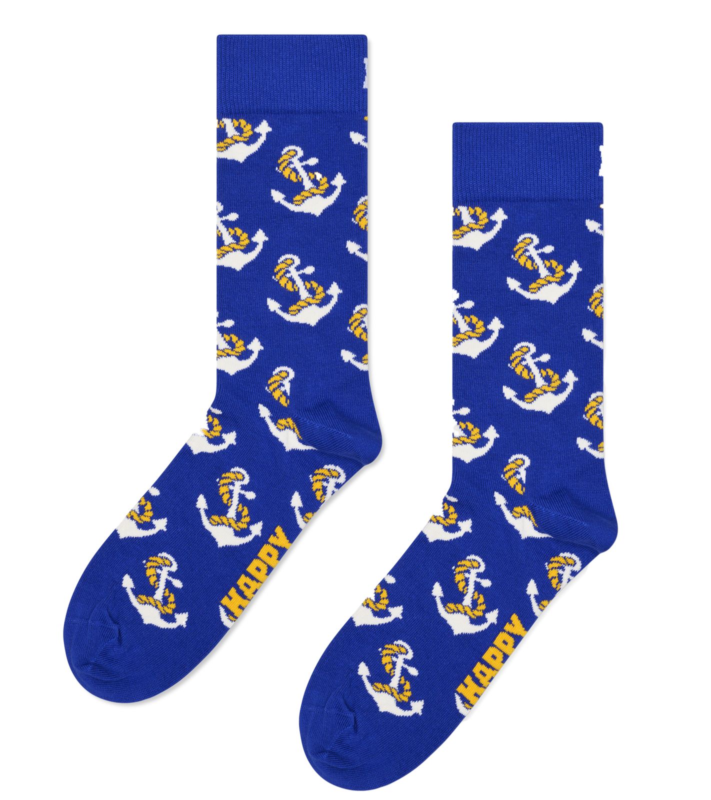 1 Paar Happy Socks Anchor Sock Herren Socken mit Maritimes Anker-Motiv Baumwoll-Socken Alltags-Strümpfe P002597 Blau/Ecru/Gelb