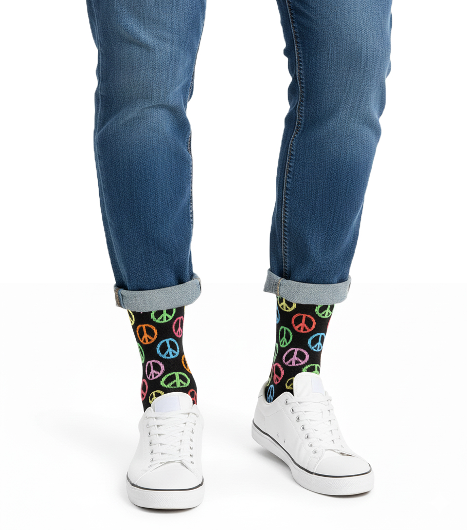 1 Paar Happy Socks Herren Socken mit Allover Peace-Print Baumwoll-Socken Alltags-Strümpfe P000729 Schwarz/Bunt