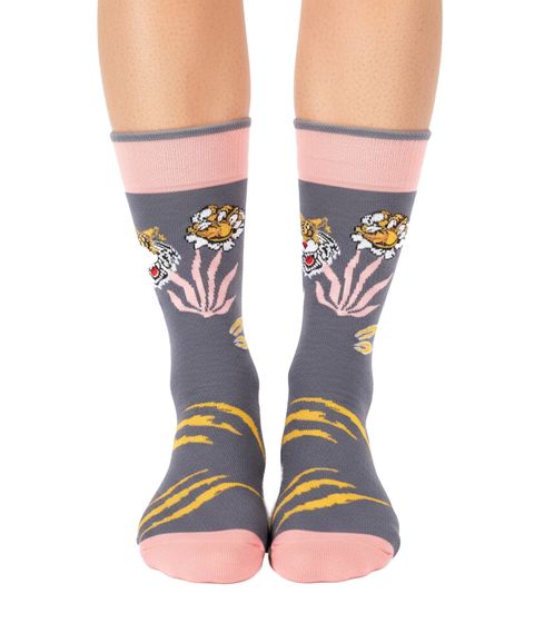 1 Paar Moustard Bengal Baumwoll-Socken mit bengalischem Tiger gemusterte lange Strümpfe 22S-BENGAL Grau/Rosa