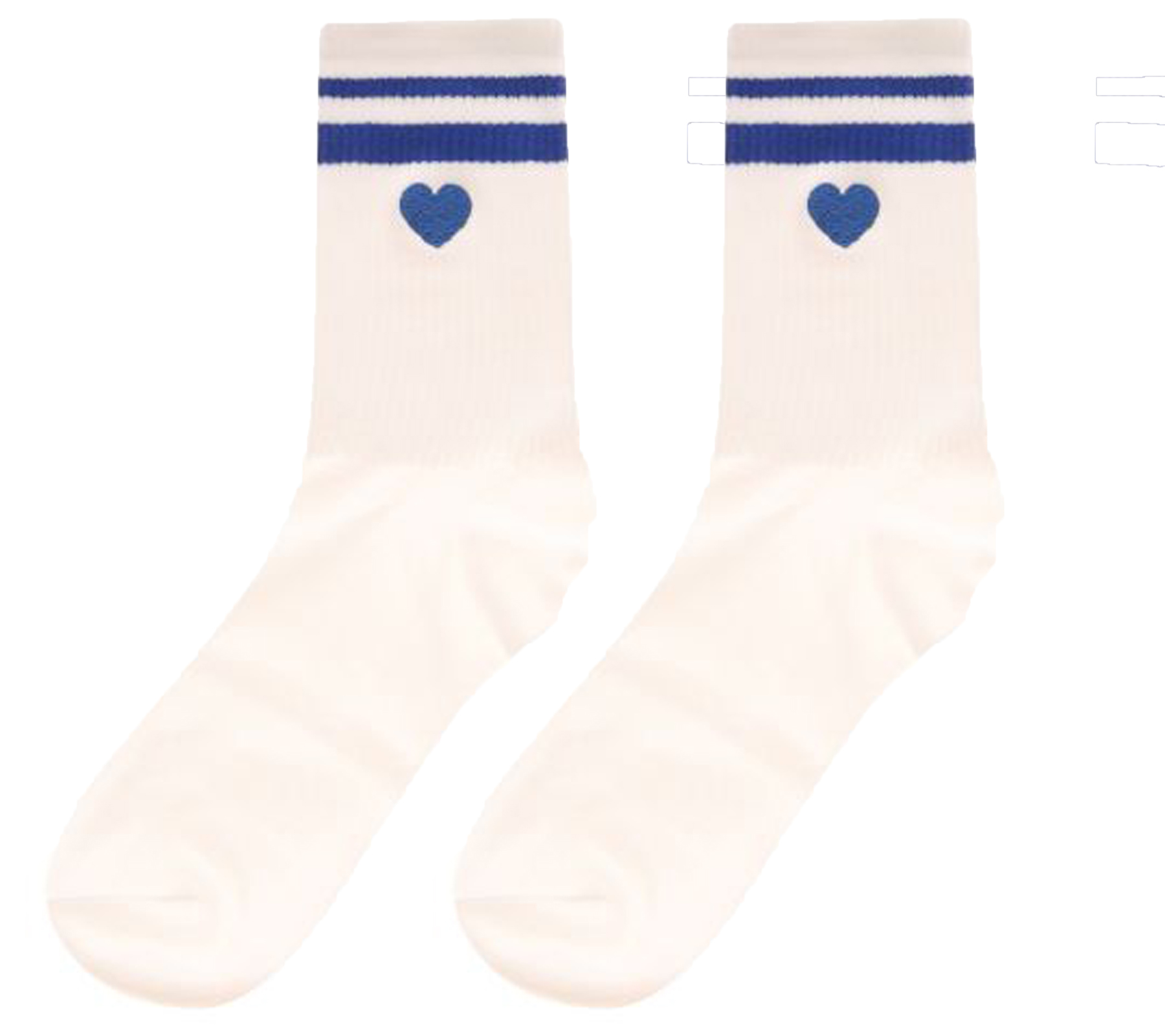 - Das blaue Herz ist jeweils auf einer Seite pro Socke