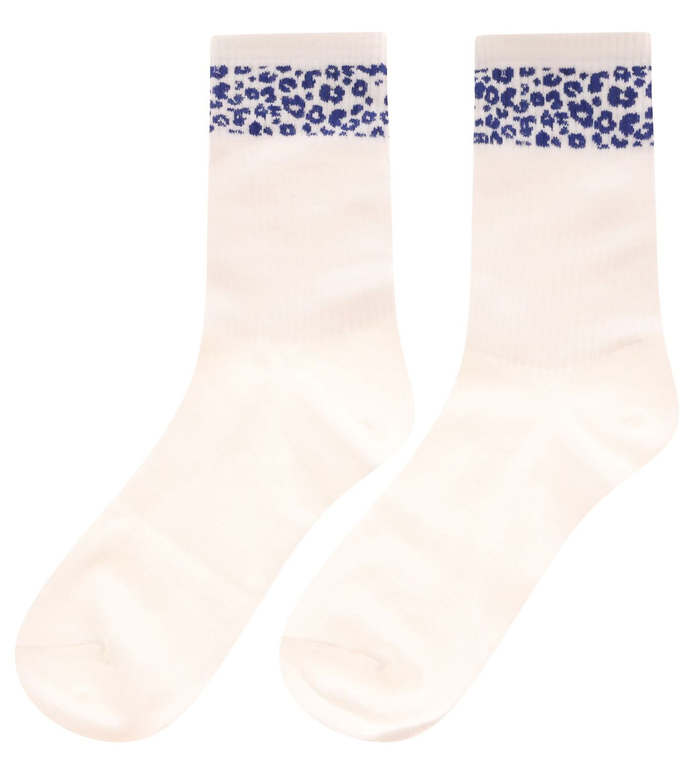 10 Paar bequeme ZWILLINGSHERZ Damen Socken Tennis-Socken mit Leoparden-Muster Alltags-Strümpfe Baumwoll-Socken 4603S K248144 Weiß/Blau