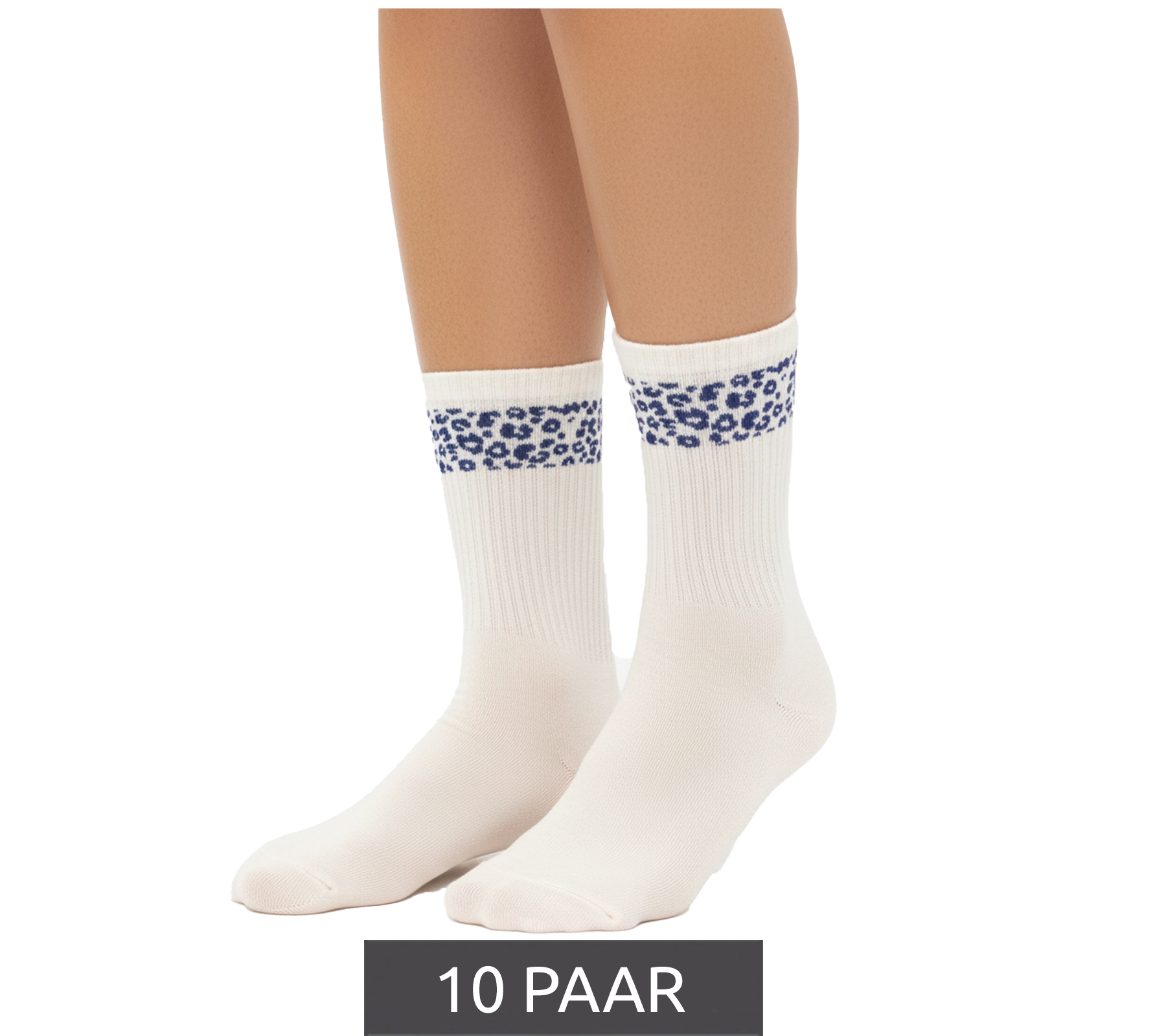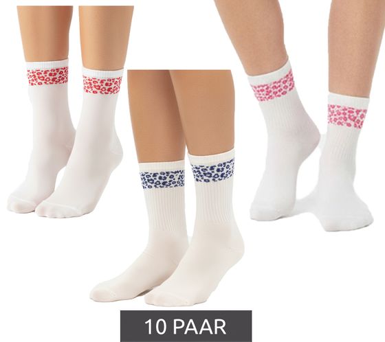 10 Paar bequeme ZWILLINGSHERZ Damen Socken Tennis-Socken mit Leoparden-Muster Alltags-Strümpfe Baumwoll-Socken 4603S K248144 Weiß/Pink, Weiß/Rot oder Weiß/Blau