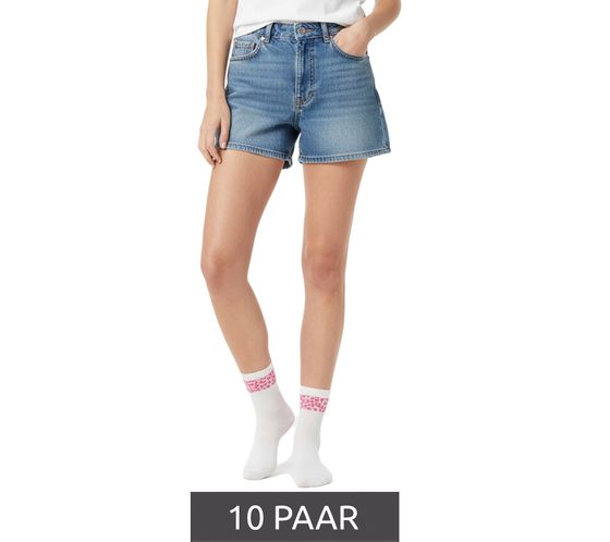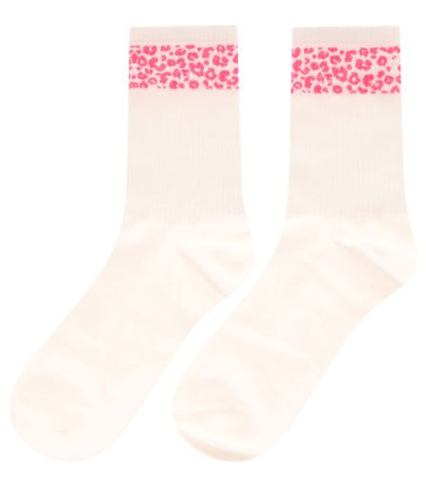 10 Paar bequeme ZWILLINGSHERZ Damen Socken Tennis-Socken mit Leoparden-Muster Alltags-Strümpfe Baumwoll-Socken 4603S K248144 Weiß/Pink