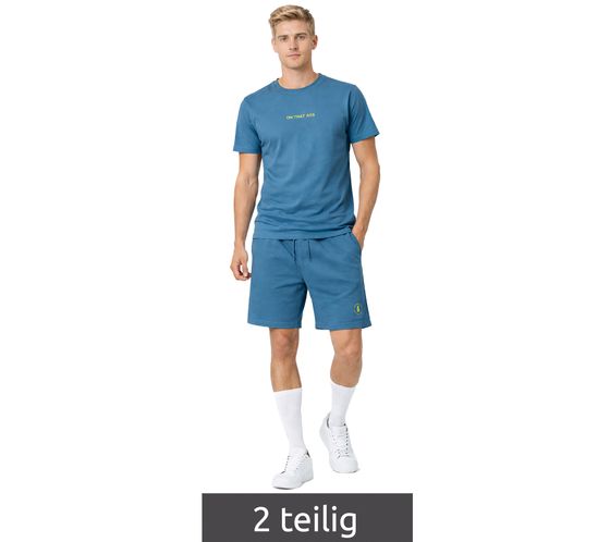 2-teiliges ON THAT ASS Herren Summer Set aus Baumwolle T-Shirt & Shorts bequemes Sommer-Outfit im modernen Stil Blau/Lime