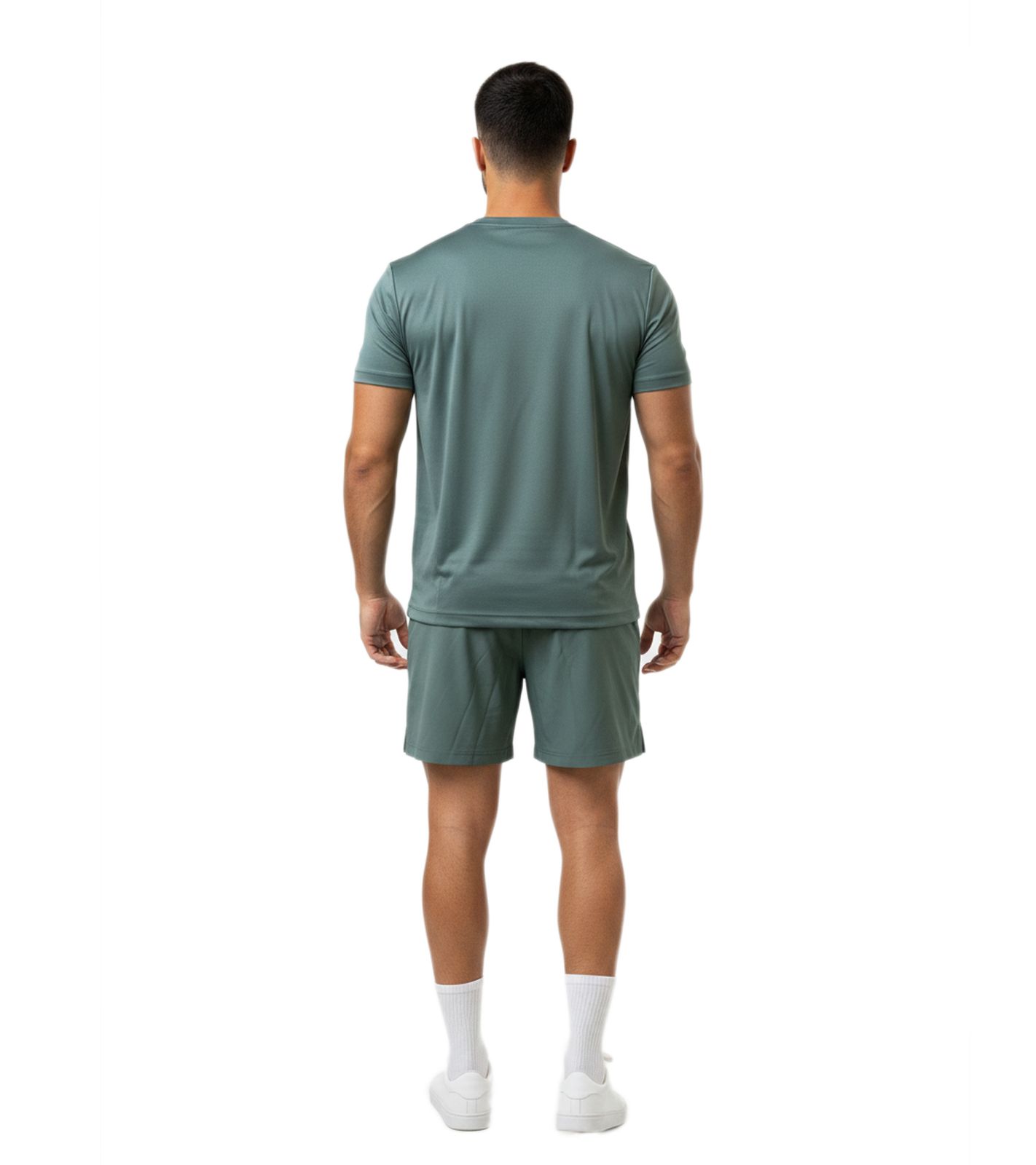 Das OTA Set kombiniert sportliche Performance mit einem minimalistischen Design. Das Set besteht aus einem leichten, atmungsaktiven T-Shirt und passenden Shorts in einem modernen Sage Green Ton.