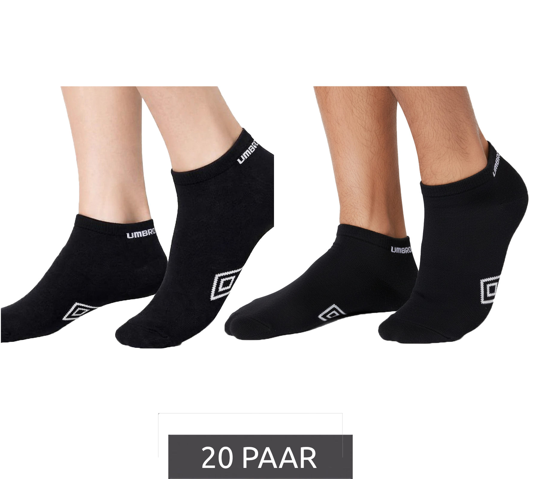 20 Paar umbro Herren und Damen Sport Socks Sneaker-Socken Strümpfe Oeko-Tex Standard 100 Schwarz
