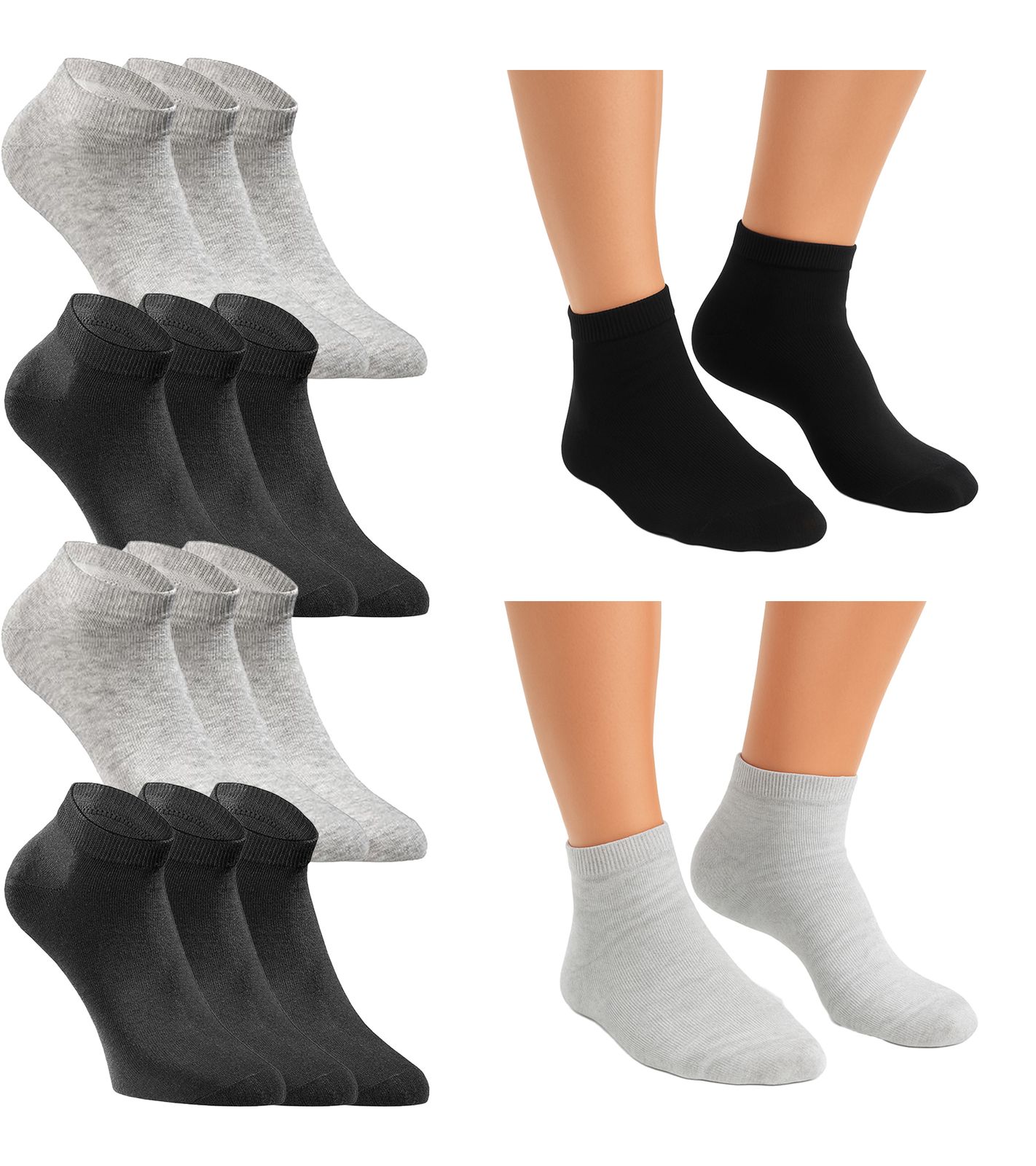 - Schwarz/Grau: 2x 6 Paar schwarze Socken, 2x 6 Paar graue Socken (24 Paar)