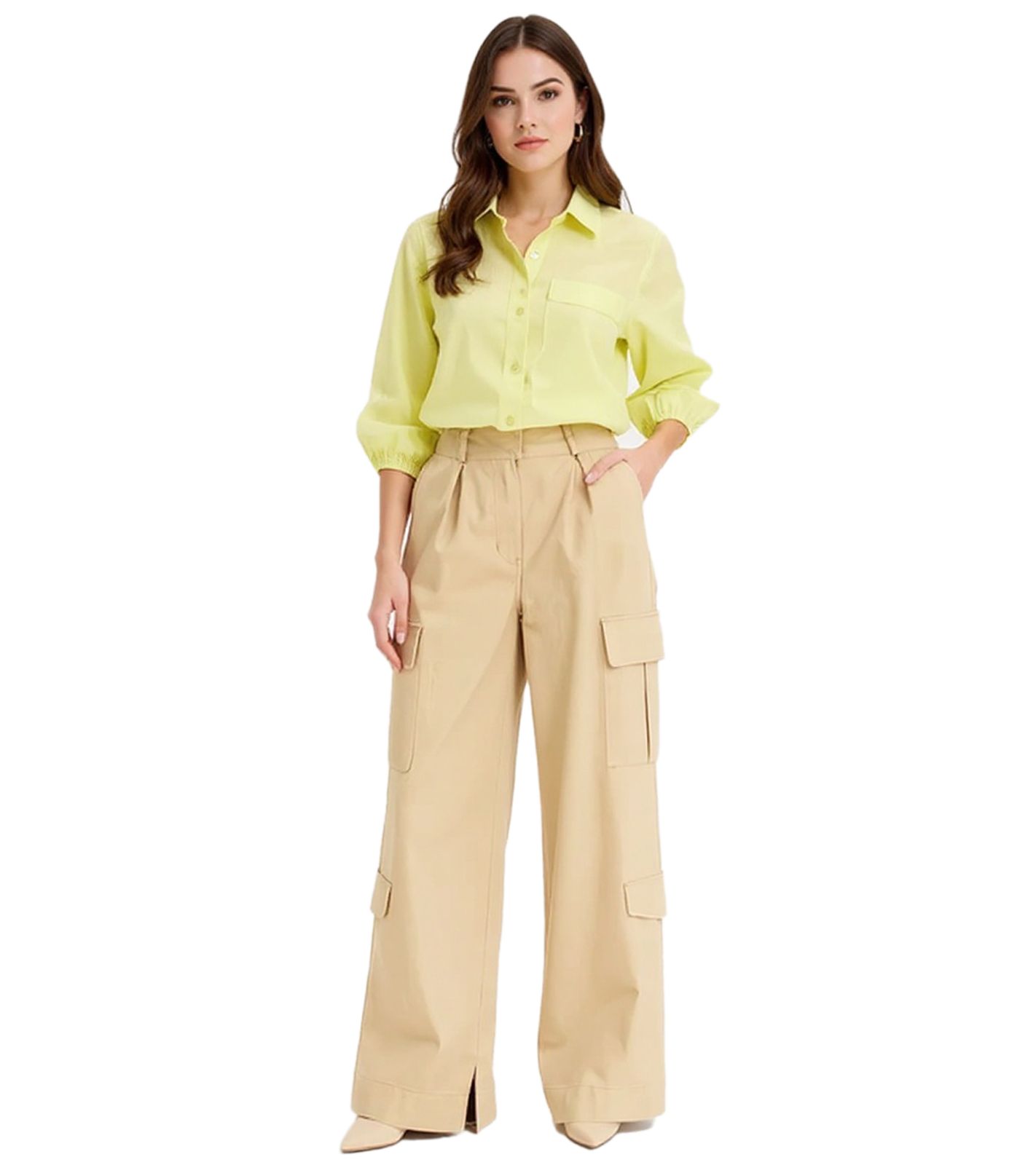 2er Pack Damen Cargo-Hose praktische Baumwolle Wide-Leg High-Waist Sommer-Hose 972109 Beige