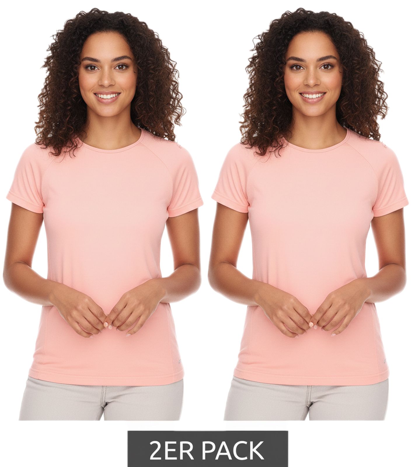 2er Pack FAYN SPORTS Damen Sport-Top atmungsaktives und schweißtransportierendes Trainings-Shirt 73022200 Lachs-Rosa