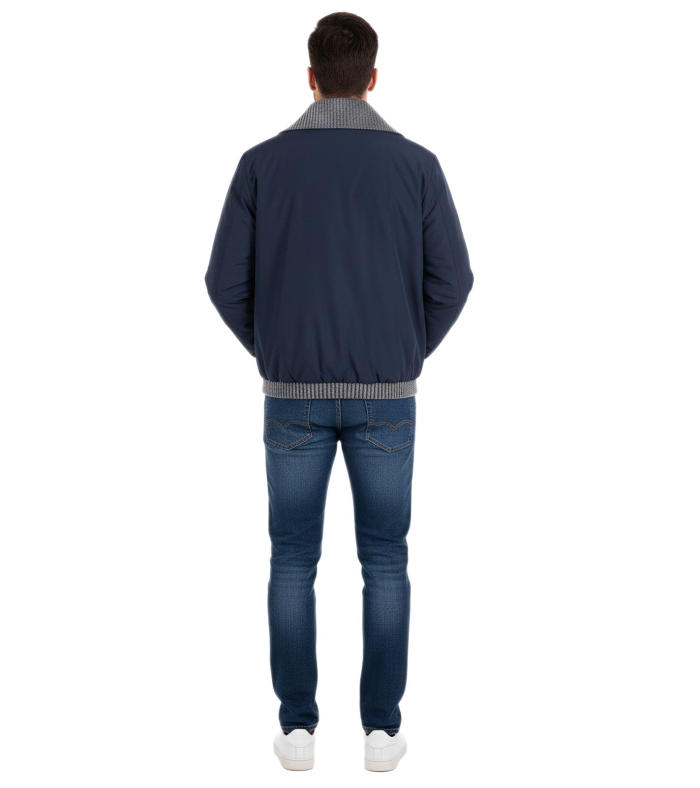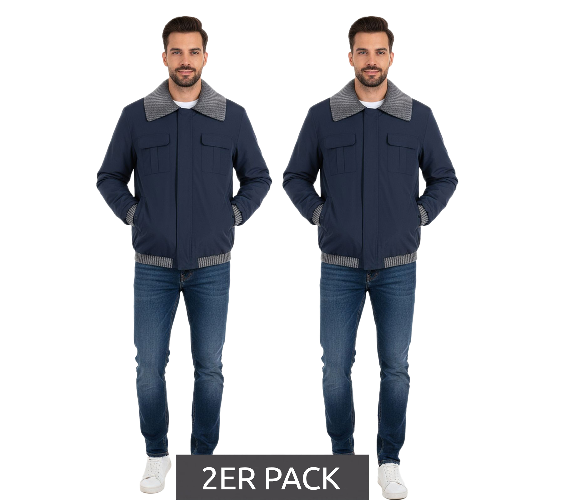 2er Pack Herren Übergangs-Jacke mir gerippten Details schlichte Alltags-Jacke Sparpack 904745 Blau/Grau