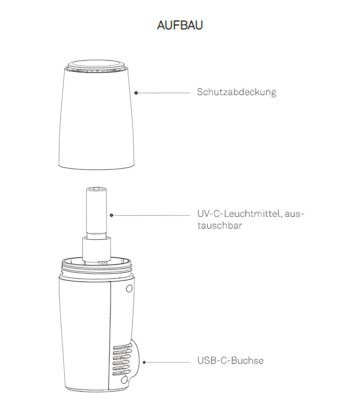 - Das Gehäuse des Luftsterilisators ist so abgeschirmt, dass kein UV-C-Licht austreten kann