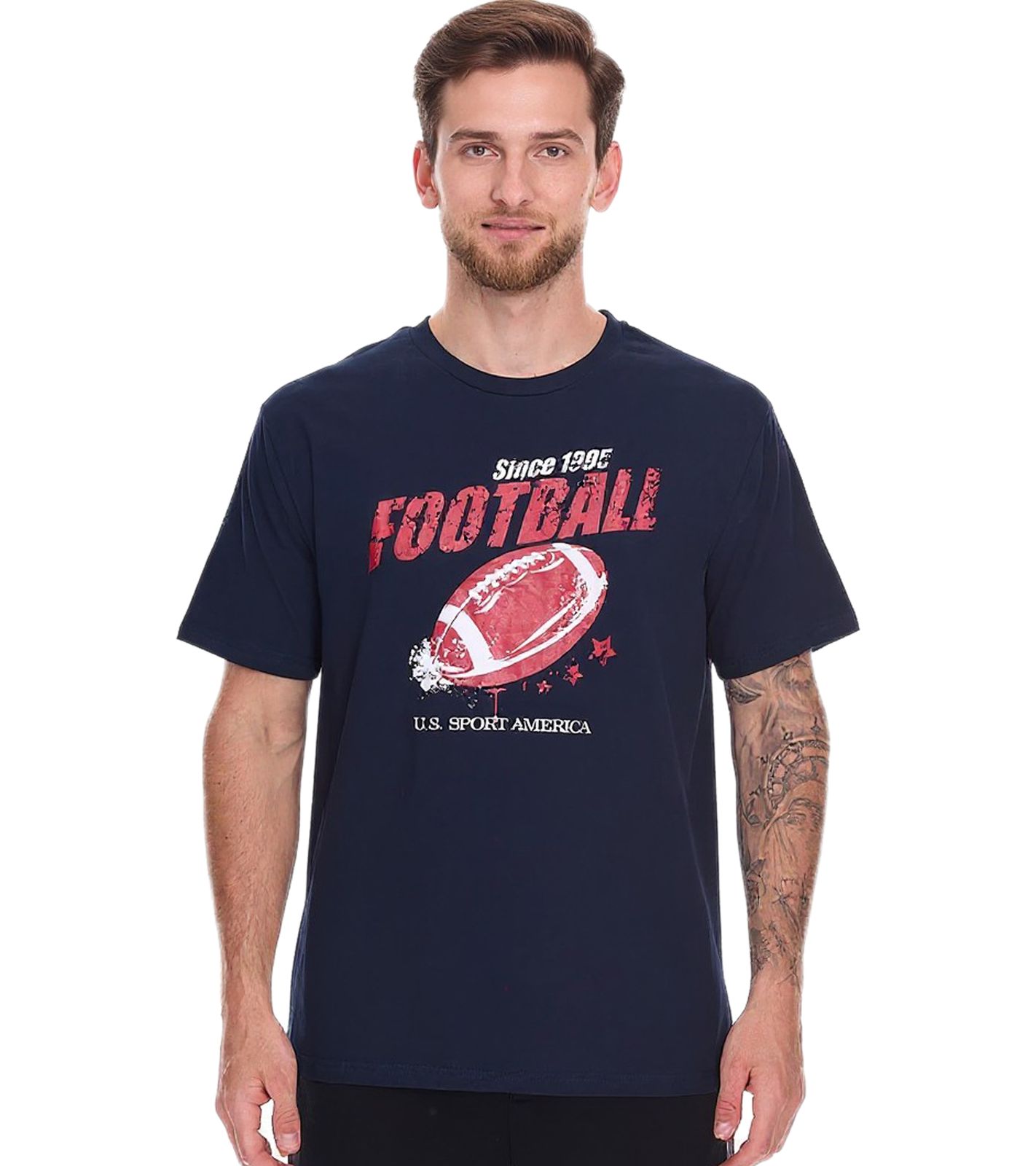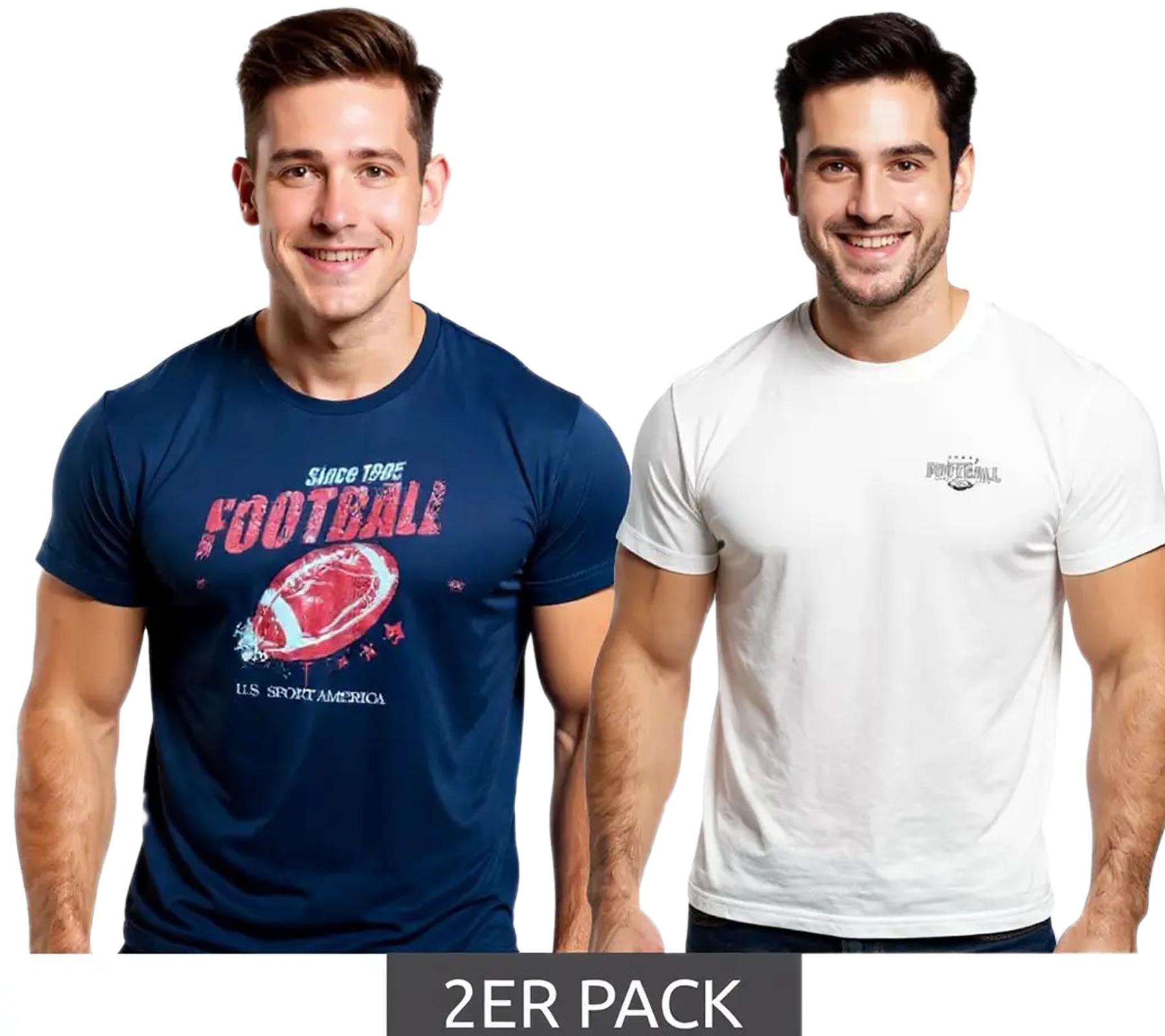 2er Pack U.S. SPORT AMERICA Herren T-Shirt Basic Baumwoll-Shirt Rundhals-Shirt Kurzarm Blau/Weiß