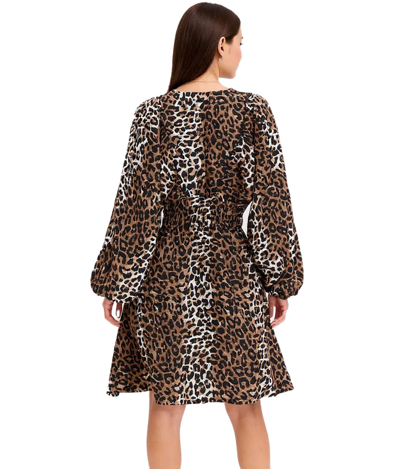 - Modisches Kleid im Animalprint mit betonter Taillenpartie und Volumenärmeln