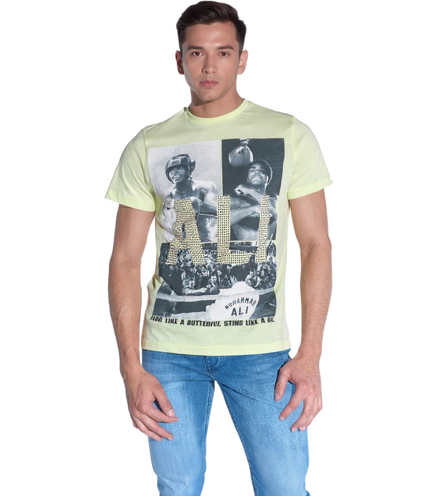 2er Sparpack COURSE Herren T-Shirt mit großem Muhammad Ali Aufdruck Baumwoll-Shirt Rundhals-Shirt 900530 Gelb