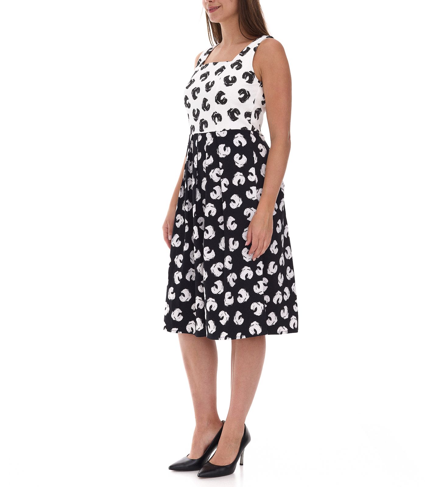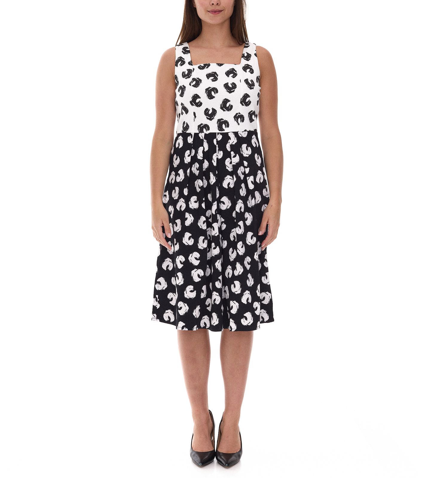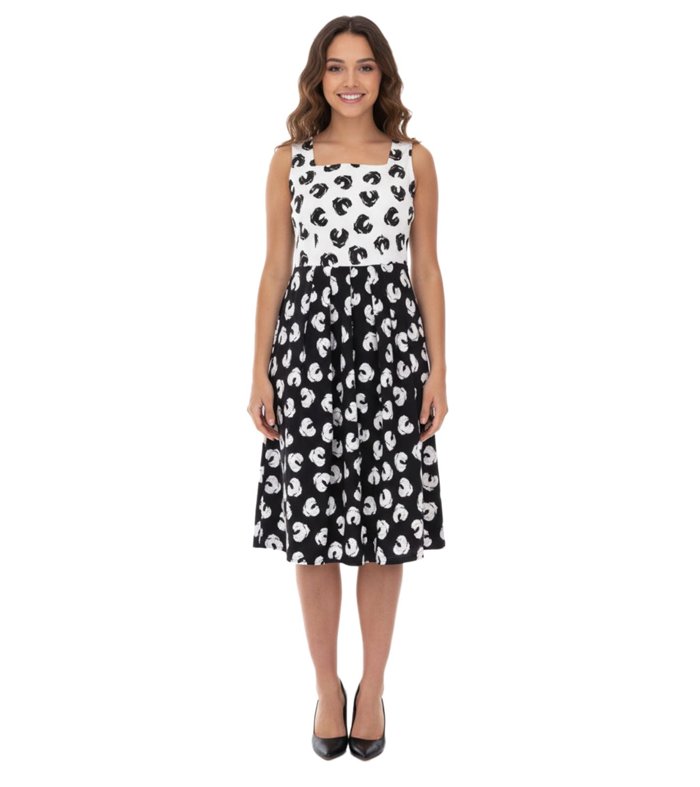2er Sparpack Damen Sommer-Kleid mit grafischem Druck Baumwoll-Kleid ohne Ärmel Midi-Kleid 948746 Weiß/Schwarz