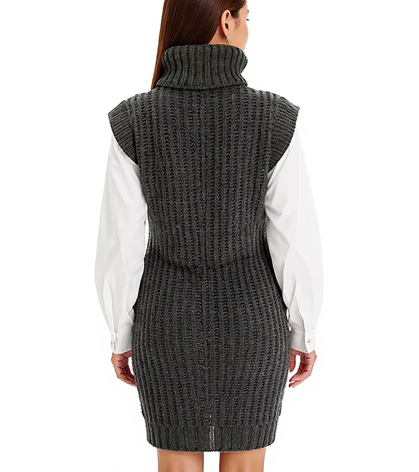 2er Sparpack Damen Strick-Kleid mit Rollkragen Pullover-Kleid im Zopfmuster 964128 Grau