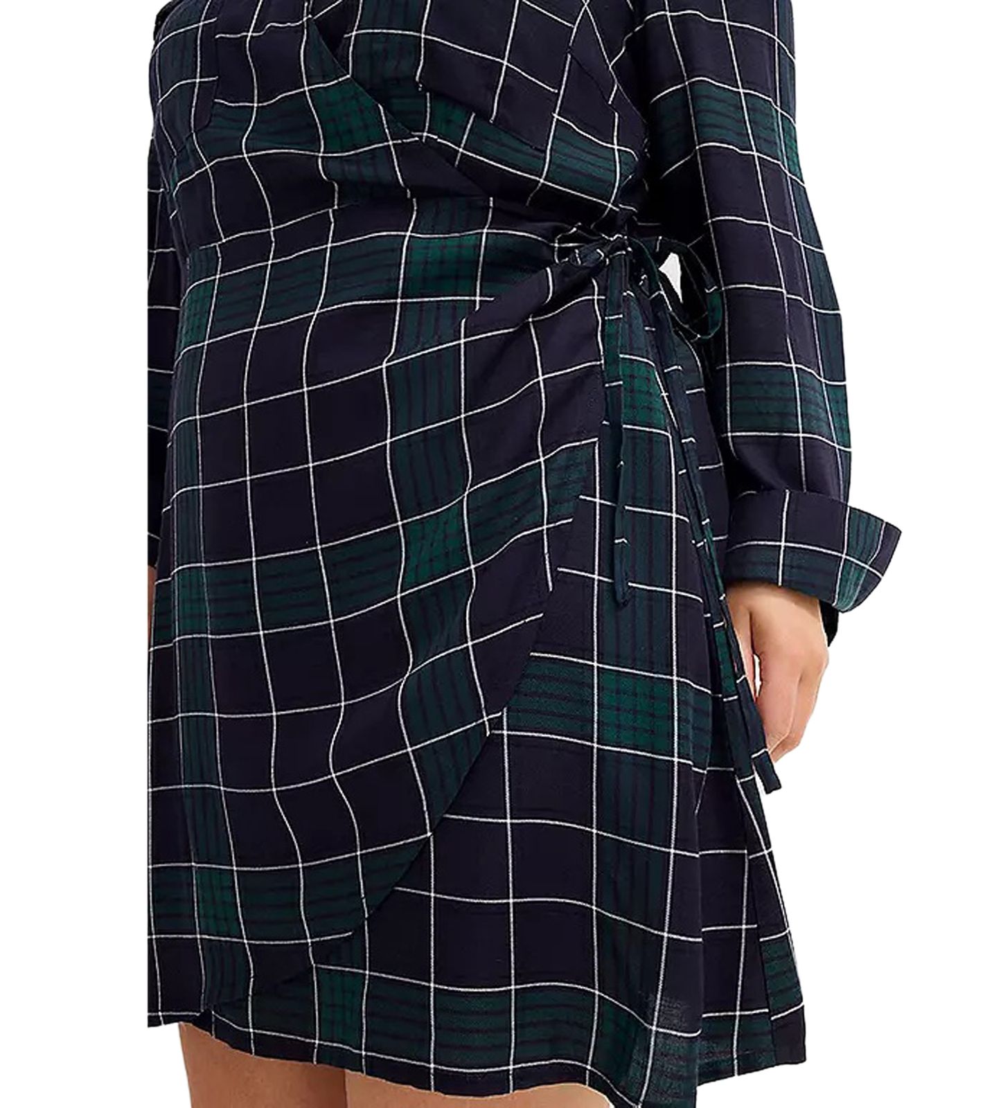 - Dieses karierte Wickelkleid mit V-Ausschnitt und langen Ärmeln mit ausgestellten Bündchen ist eine schicke und vielseitige Ergänzung für Ihre Garderobe