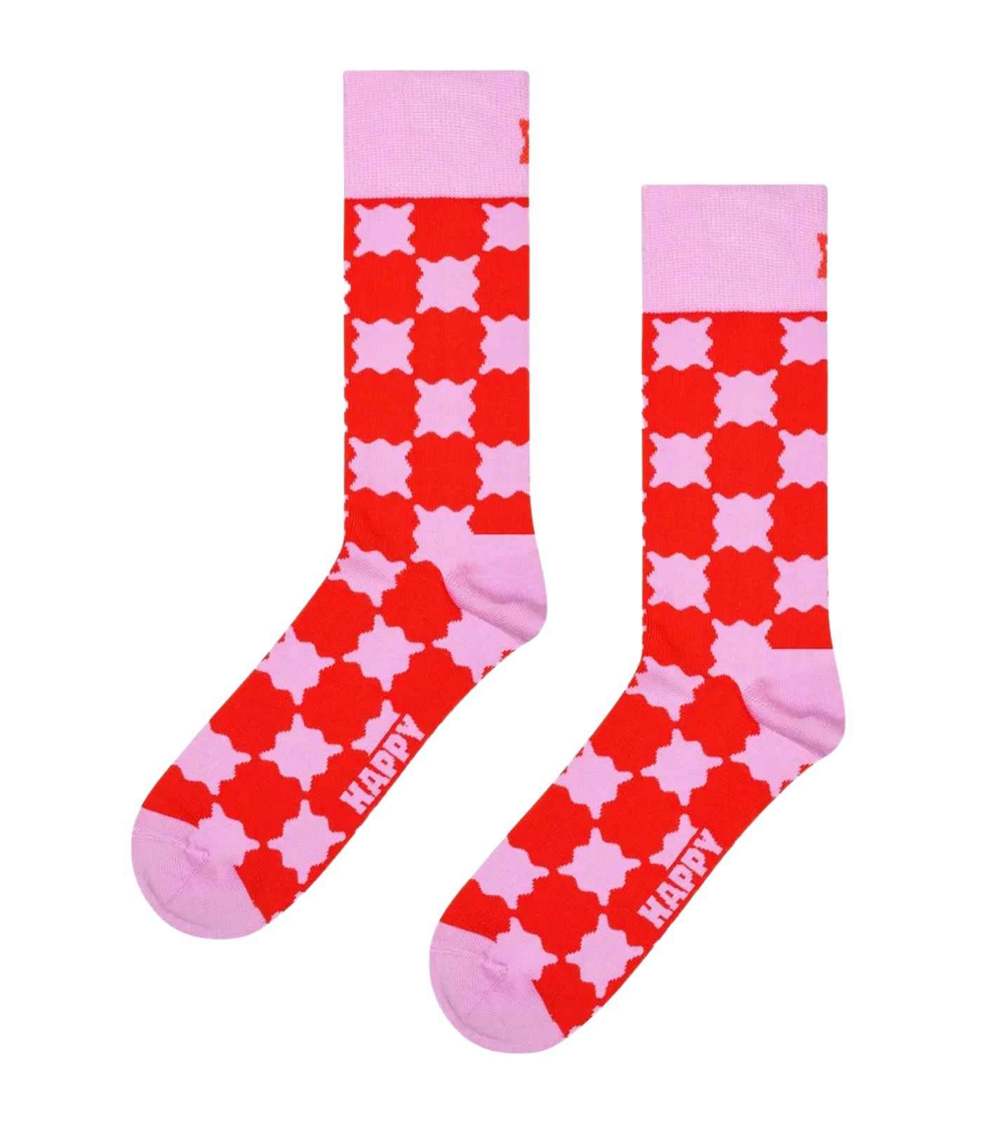 3 Paar Happy Socks Baumwoll-Socken Sparpack mit Karos, Streifen und Kirschen im Argyle-Stil Alltags-Strümpfe in Geschenk-Box P002655 Blau//Rot/Weiß
