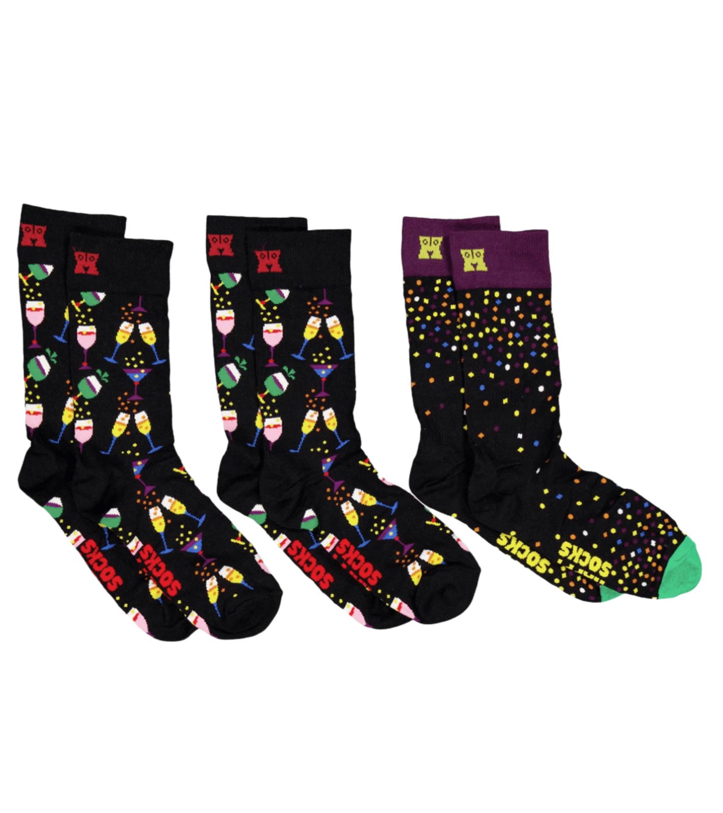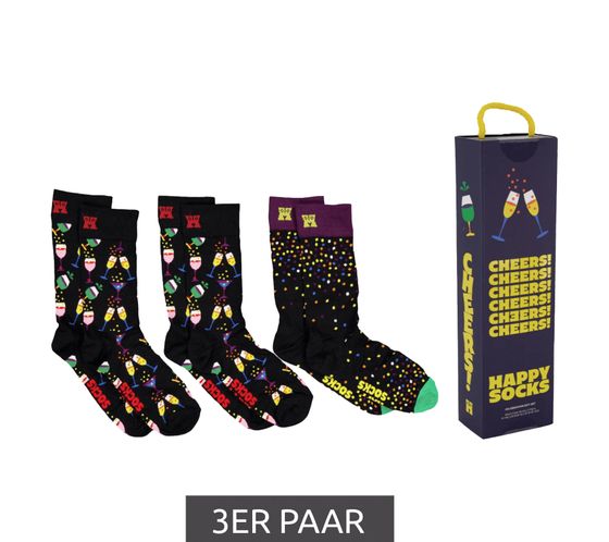 3 Paar Happy Socks Celebrations Edition Baumwoll-Socken mit Sektgläsern Cocktails und Konfetti-Punkten-Print Sparpack in Geschenk-Box P001723 Schwarz/Bunt
