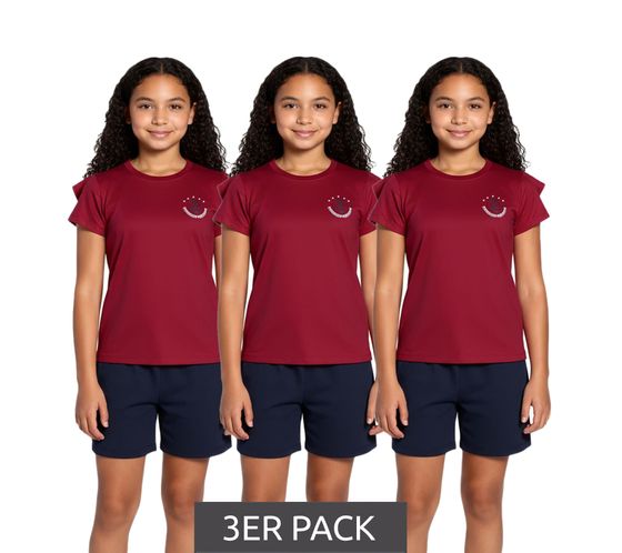 3er Pack DELMAO Kinder T-Shirt für Mädchen mit Rüschen an den Ärmeln Baumwoll-Shirt Sommer-Shirt Sparpack 71790542 Rot