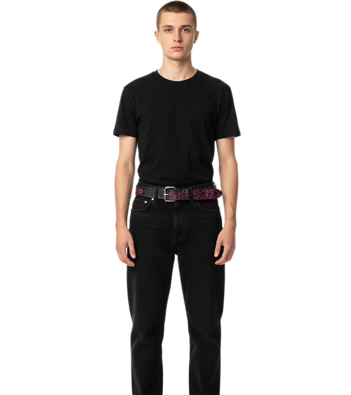 3er Pack HIM Gürtel Echtleder-Gürtel mit Band-Schriftzug stylischer Freizeit-Gürtel Länge 110cm Sparpack Schwarz/Lila