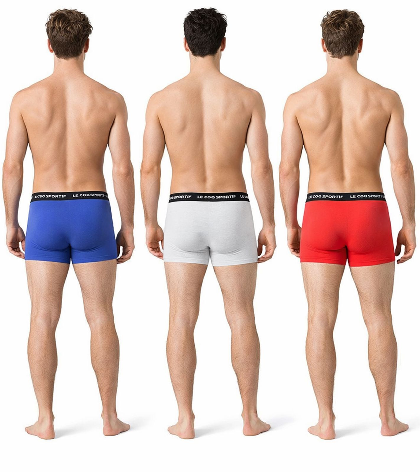 3er Pack Le Coq Sportif Basic Boxer Herren Boxer-Shorts Baumwoll-Unterhose Unterwäsche Grau/Bordeaux/Schwarz oder Rot/Hell-Grau/Blau
