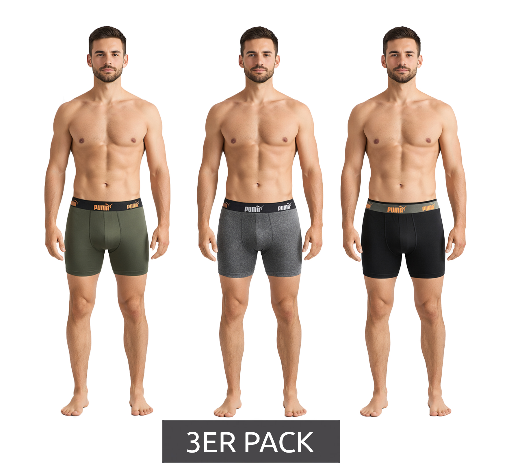 3er Pack PUMA Basic Boxer Herren Boxer-Shorts Baumwoll-Unterhose Unterwäsche 100003547 3726 Oliv-Grün/Grau/Schwarz