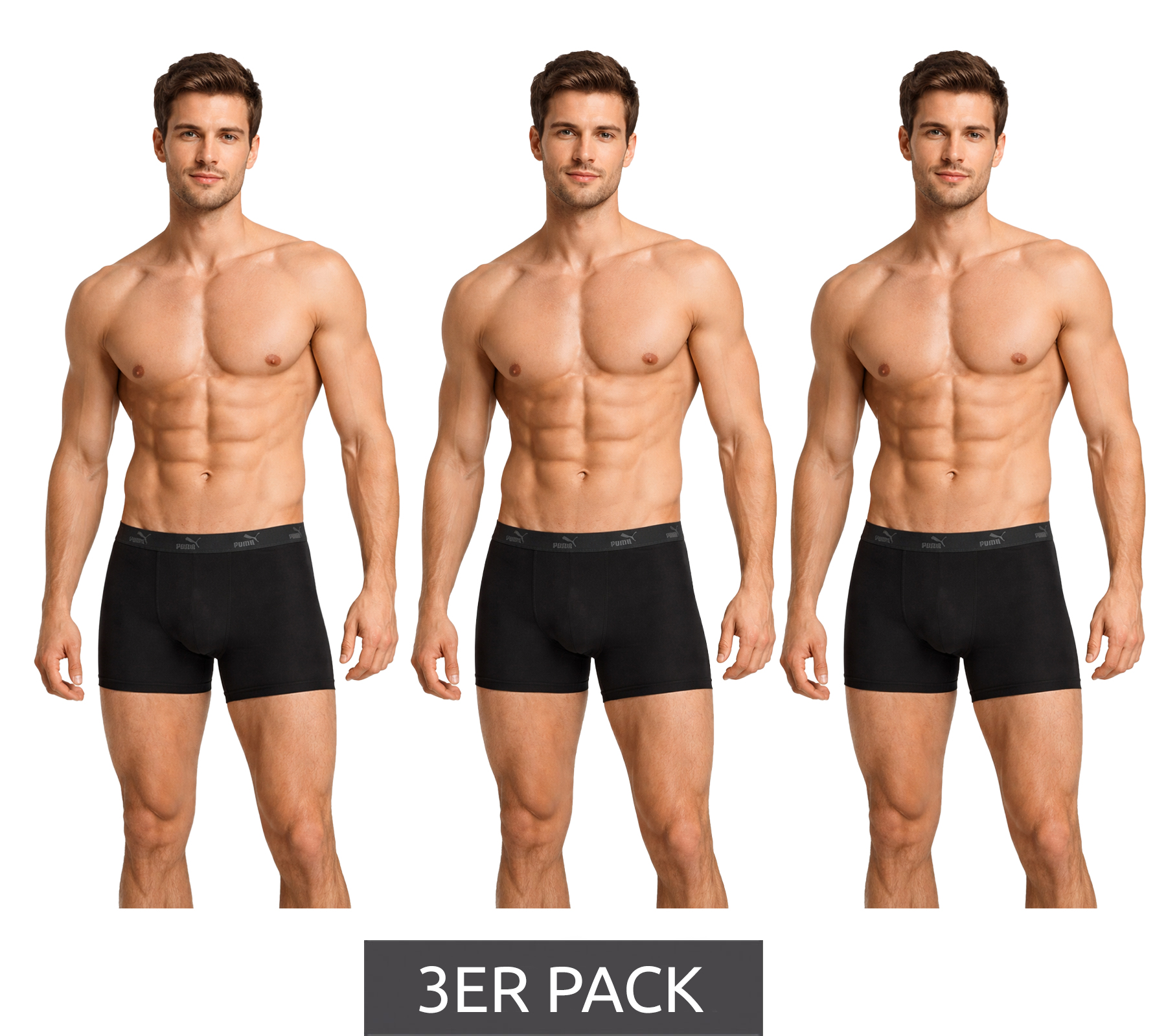 3er Pack PUMA Basic Boxer Herren Boxer-Shorts Baumwoll-Unterhose Unterwäsche 701218254 001 Schwarz