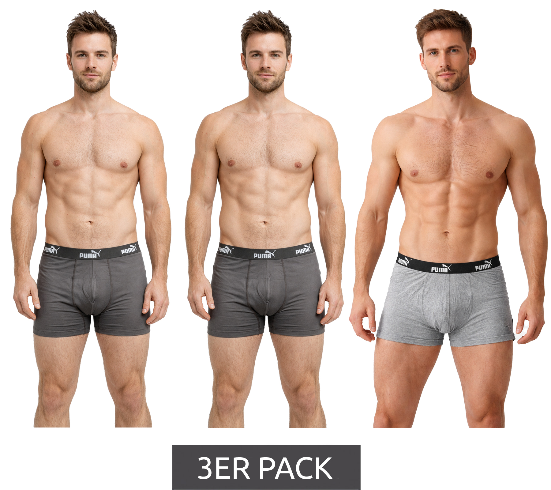 3er Pack PUMA Basic Boxer Herren Boxer-Shorts Baumwoll-Unterhose Unterwäsche 701218254 007 Grau/Hell-Grau