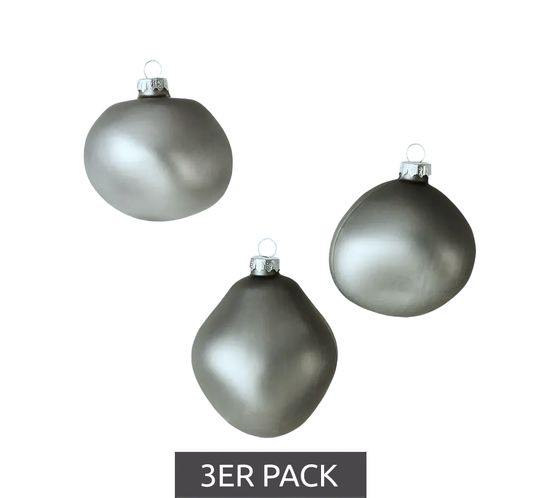 3er Pack Weihnachtskugeln in organischen Formen Glas-Kugeln Wohn-Dekoration 974216 Anthrazit