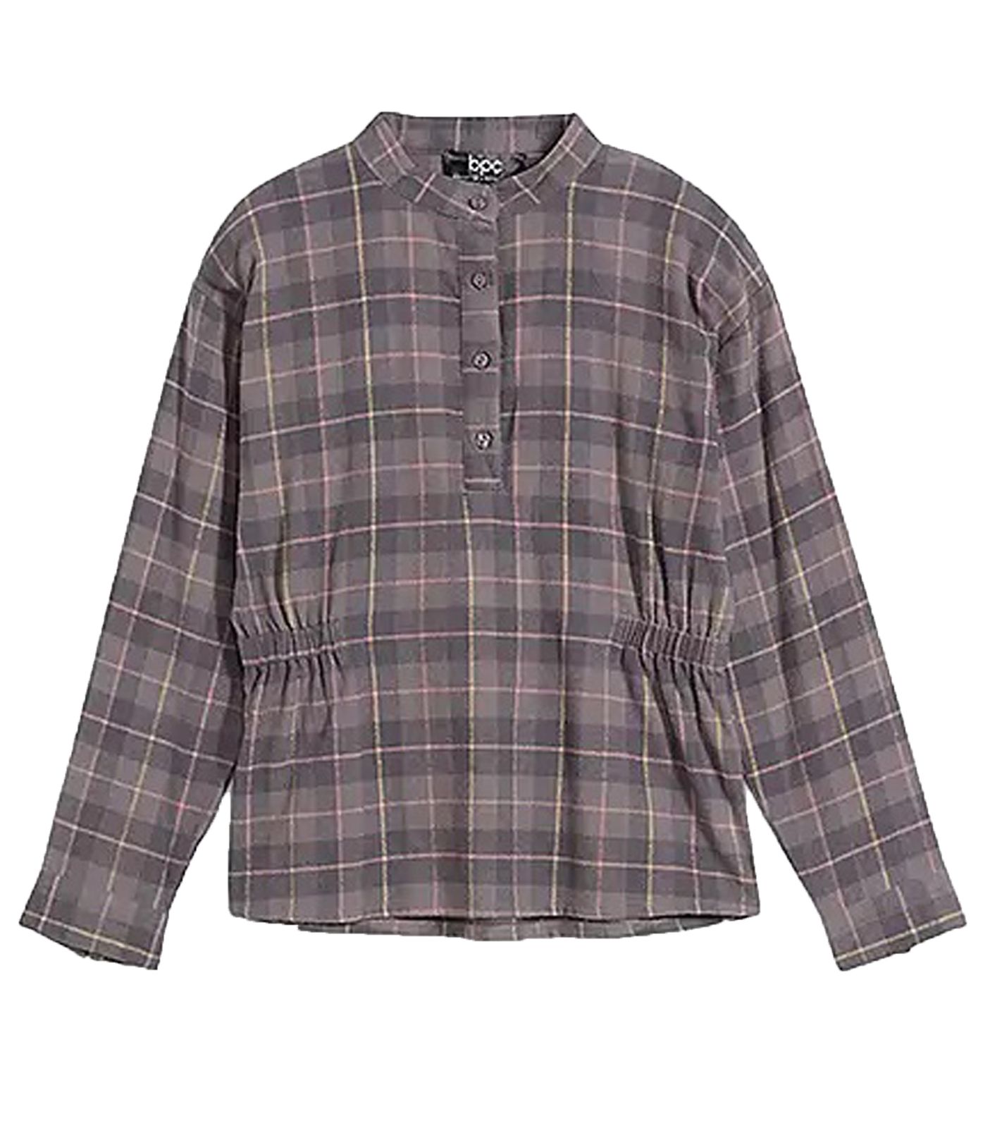 3er Sparpack Kinder Flanell-Bluse für Mädchen Baumwoll-Shirt mit Raffung an der Taille mit Knopfverschluss 930775 Grau/Rosa