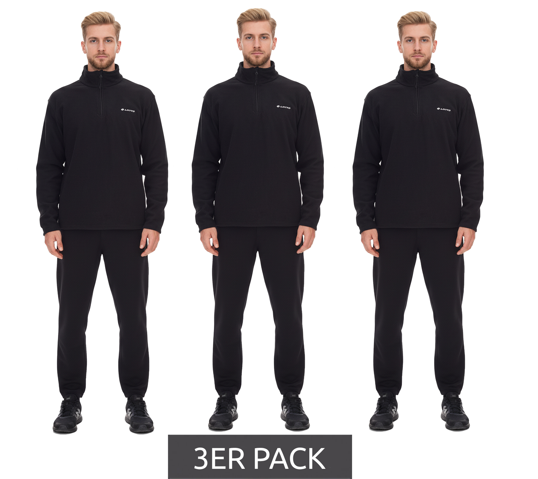 3er Sparpack LOTTO Herren Fleece-Sweater Trainings-Pullover mit Reißverschluss Sweat-Zipper MPFX1000NET Schwarz
