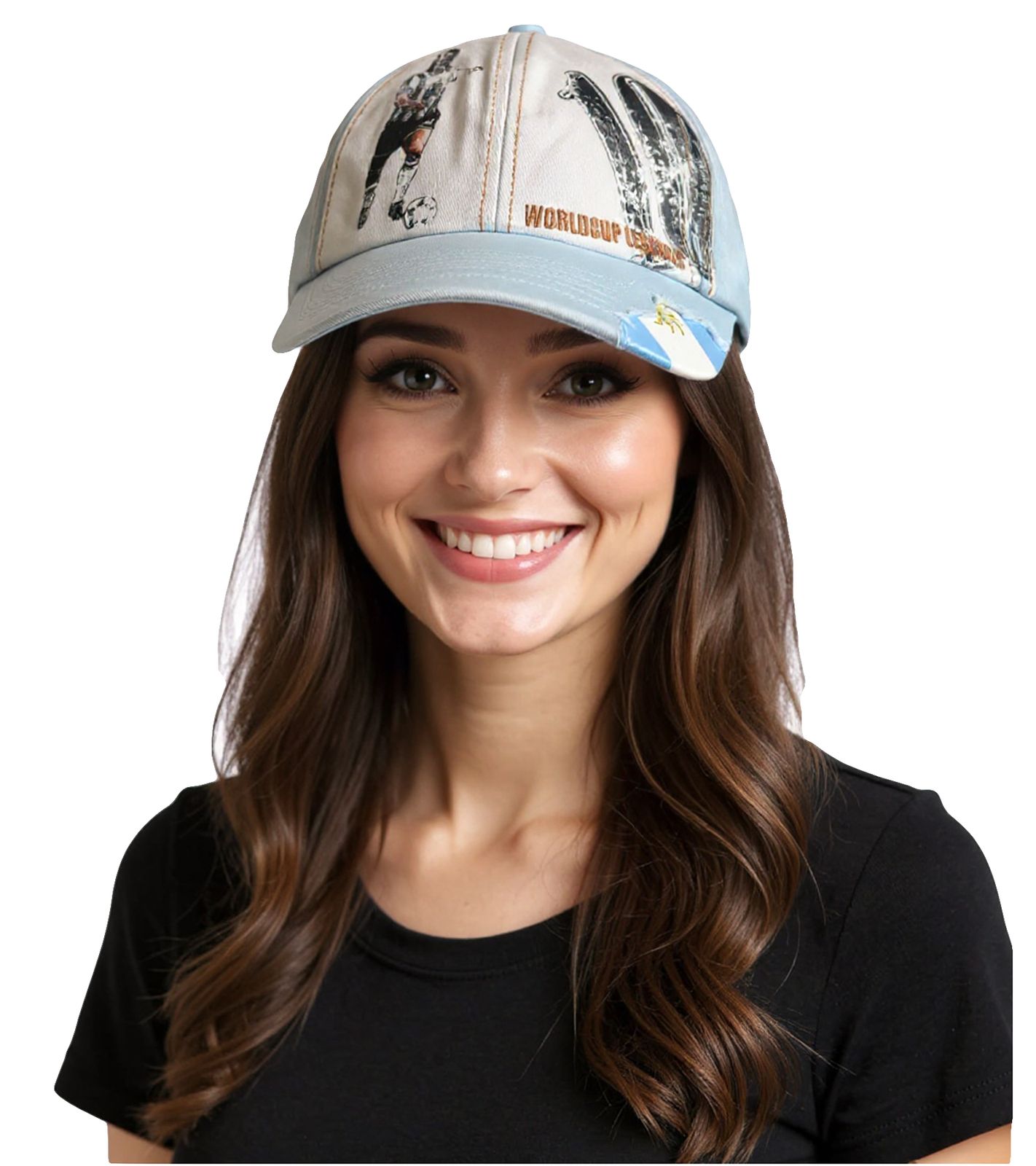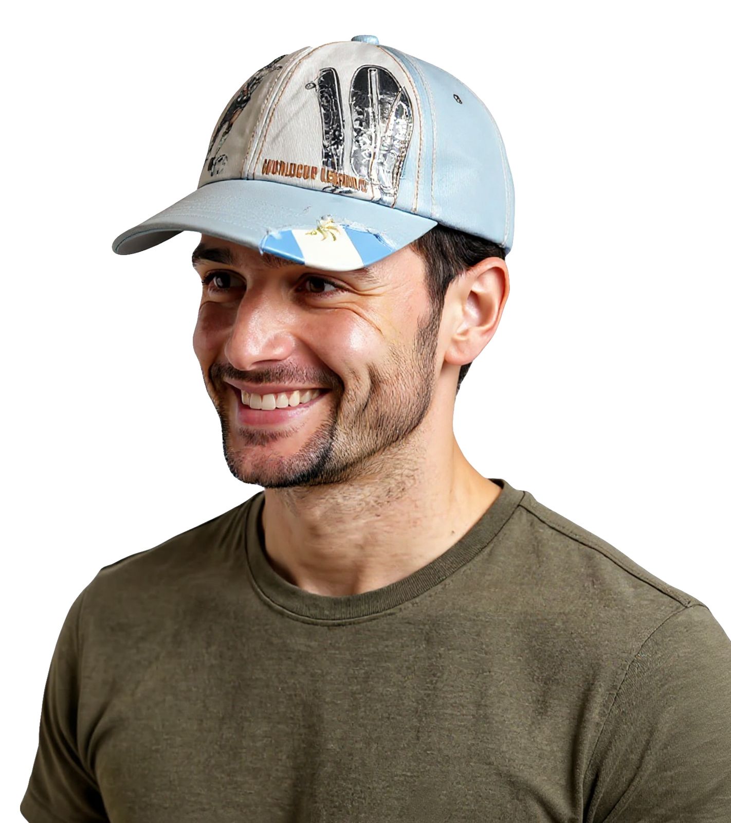 3er Sparpack WORLDCUP LEGENDS Unisex Baseball-Cap im Argentinien-Design Baumwoll-Cap mit Diego Maradona-Print Curved-Brim-Cap Damaged-Look TC123029WCL Blau/Weiß