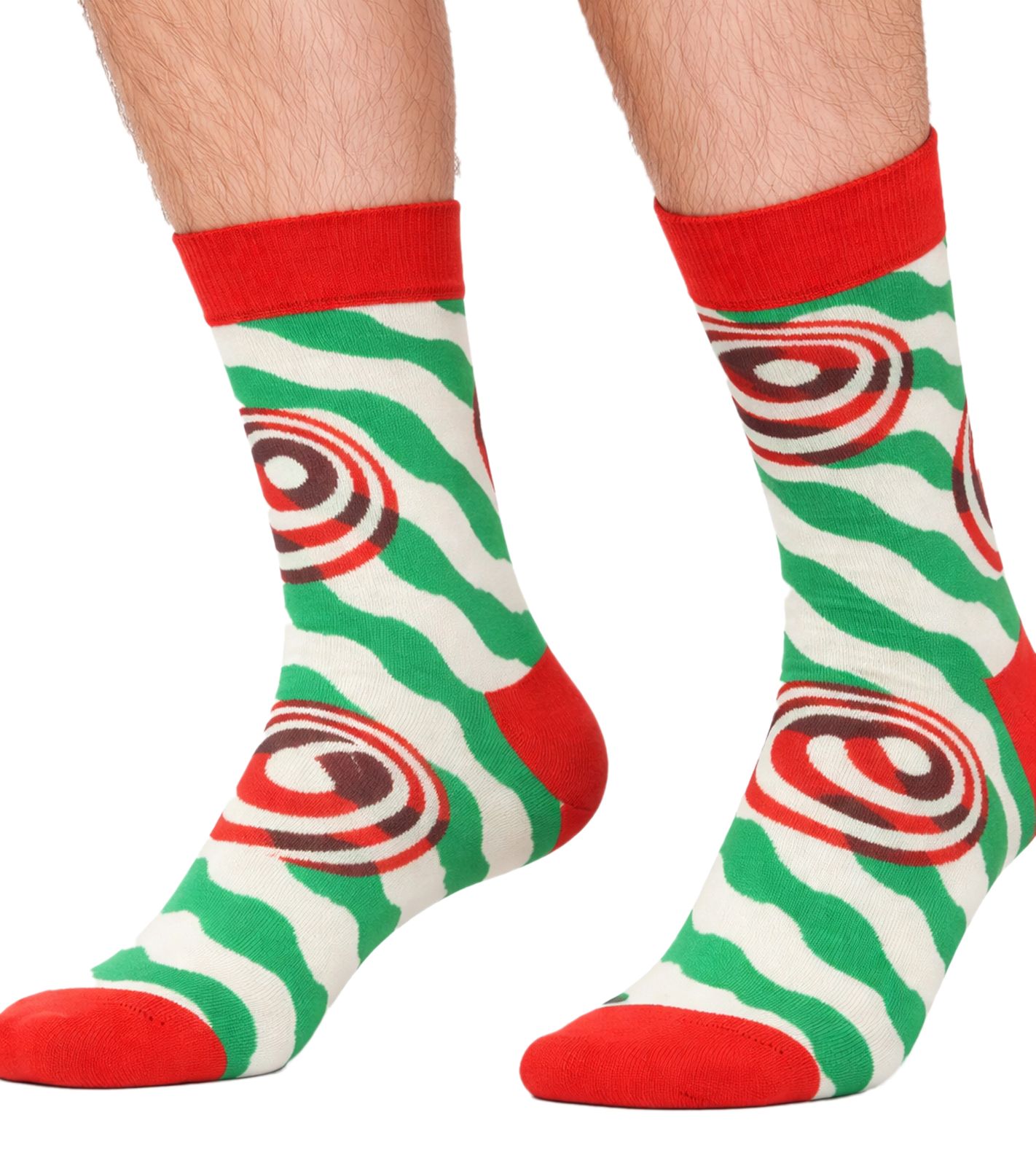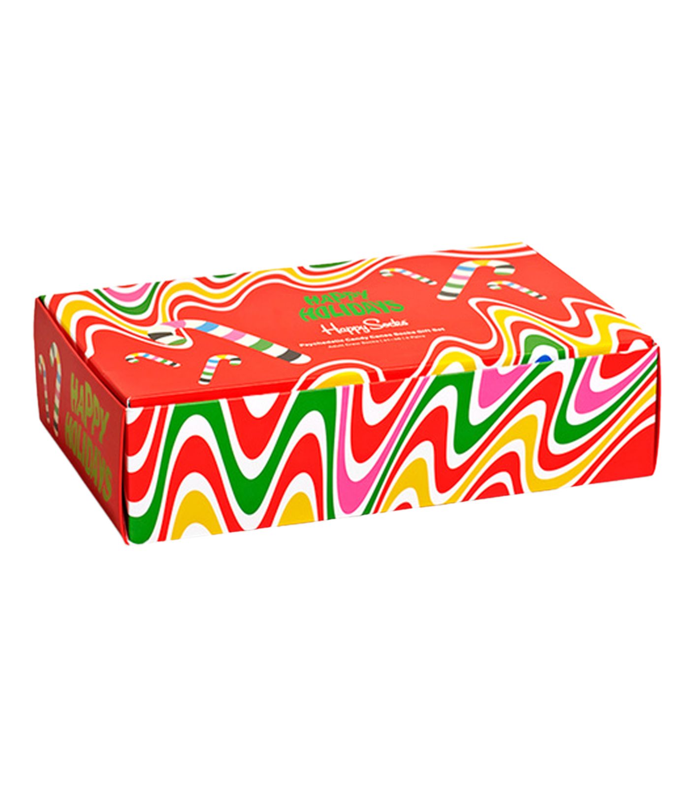 4 Paar Happy Socks Psychedelic Candy Cane Herren Baumwoll-Socken mit weihnachtlichem-Print Alltags-Strümpfe in Geschenk-Box XSAN09-0100 Bunt
