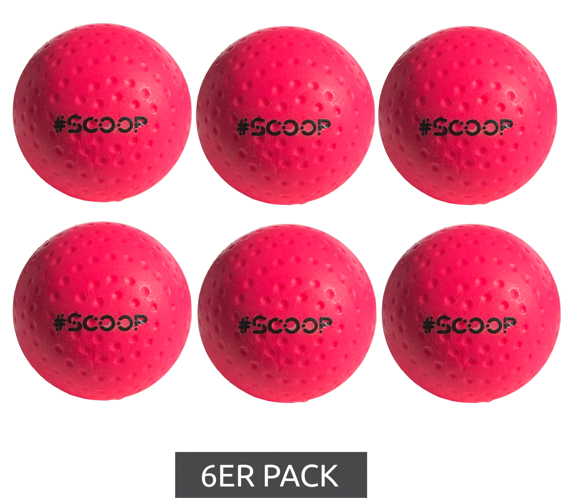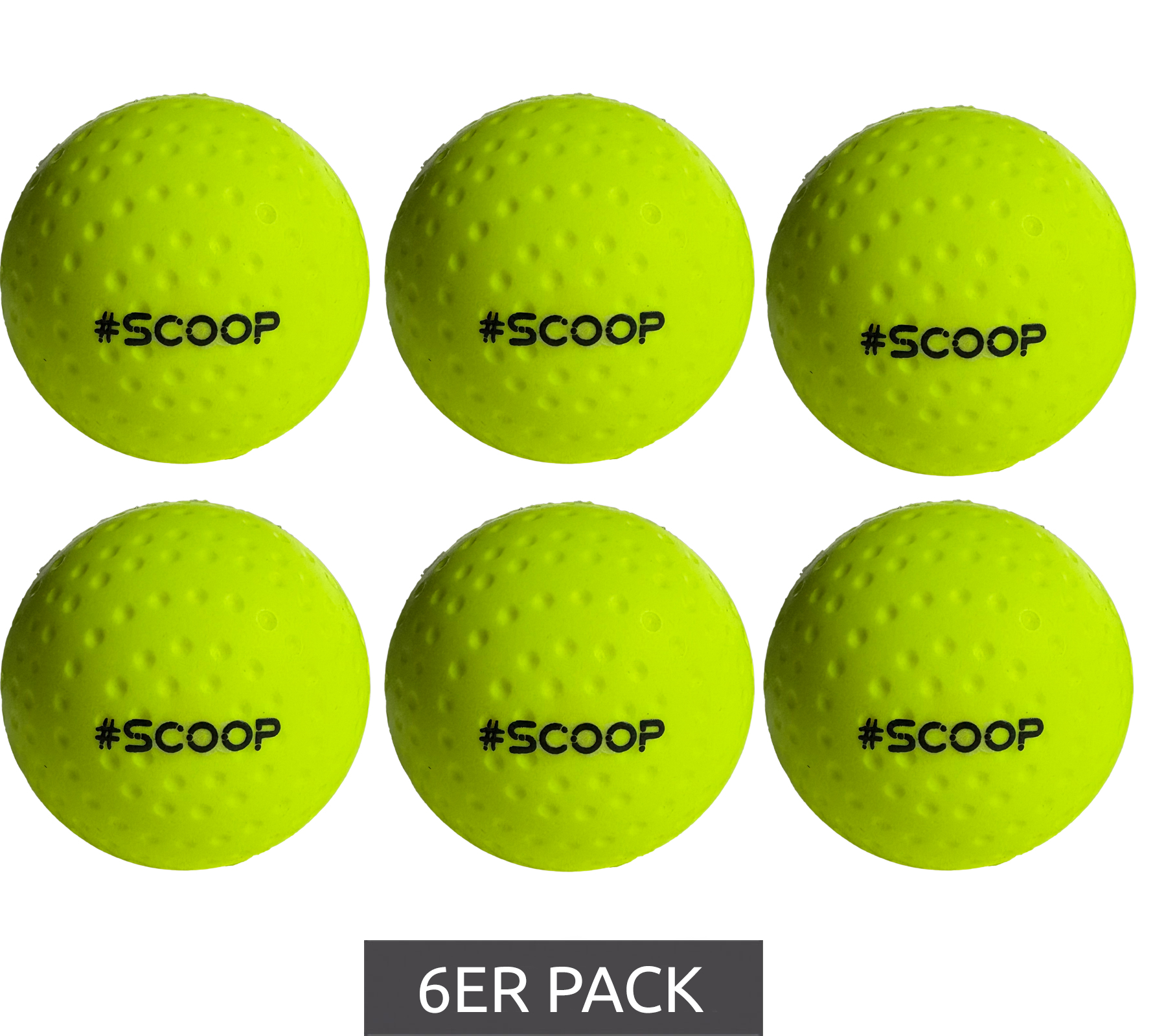 6er Sparpack SCOOP X-Treme Hockey Street-Balls mit Dimple-Design Hockeyball Sport-Ausrüstung Weiß, Grün, Pink, Gelb oder Orange