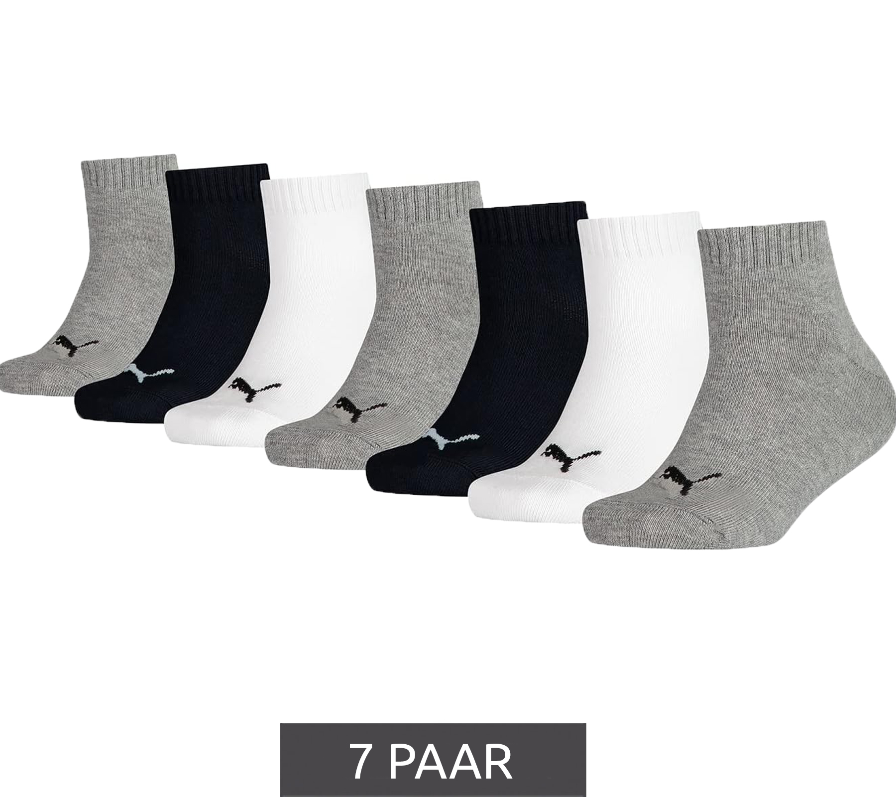 7 Paar PUMA Kids Quarter Baumwoll-Socken Mädchen und Jungen Baumwoll-Strümpfe mit flacher Naht 701222092 002 Schwarz/Weiß/Grau