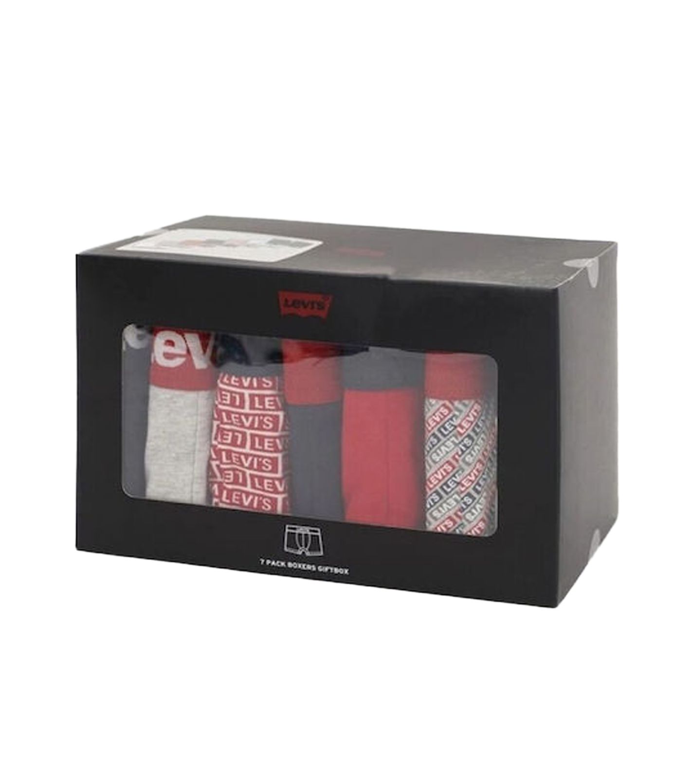 7er Pack LEVI`S Herren Boxershorts Baumwoll-Unterwäsche mit farblichen Akzenten am Bund in Geschenkbox 701225625 004 Navy/Rot/Weiß/Grau
