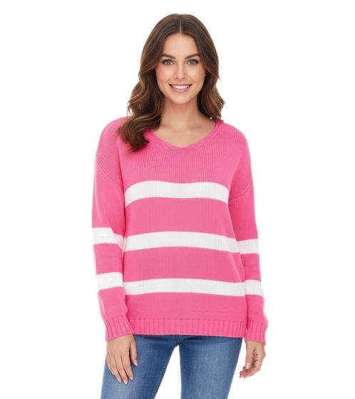 Aniston CASUAL Damen Strick-Pullover mit Baumwollanteil Alltags-Pullover Langarm-Shirt 39680449 Rosa/Weiß