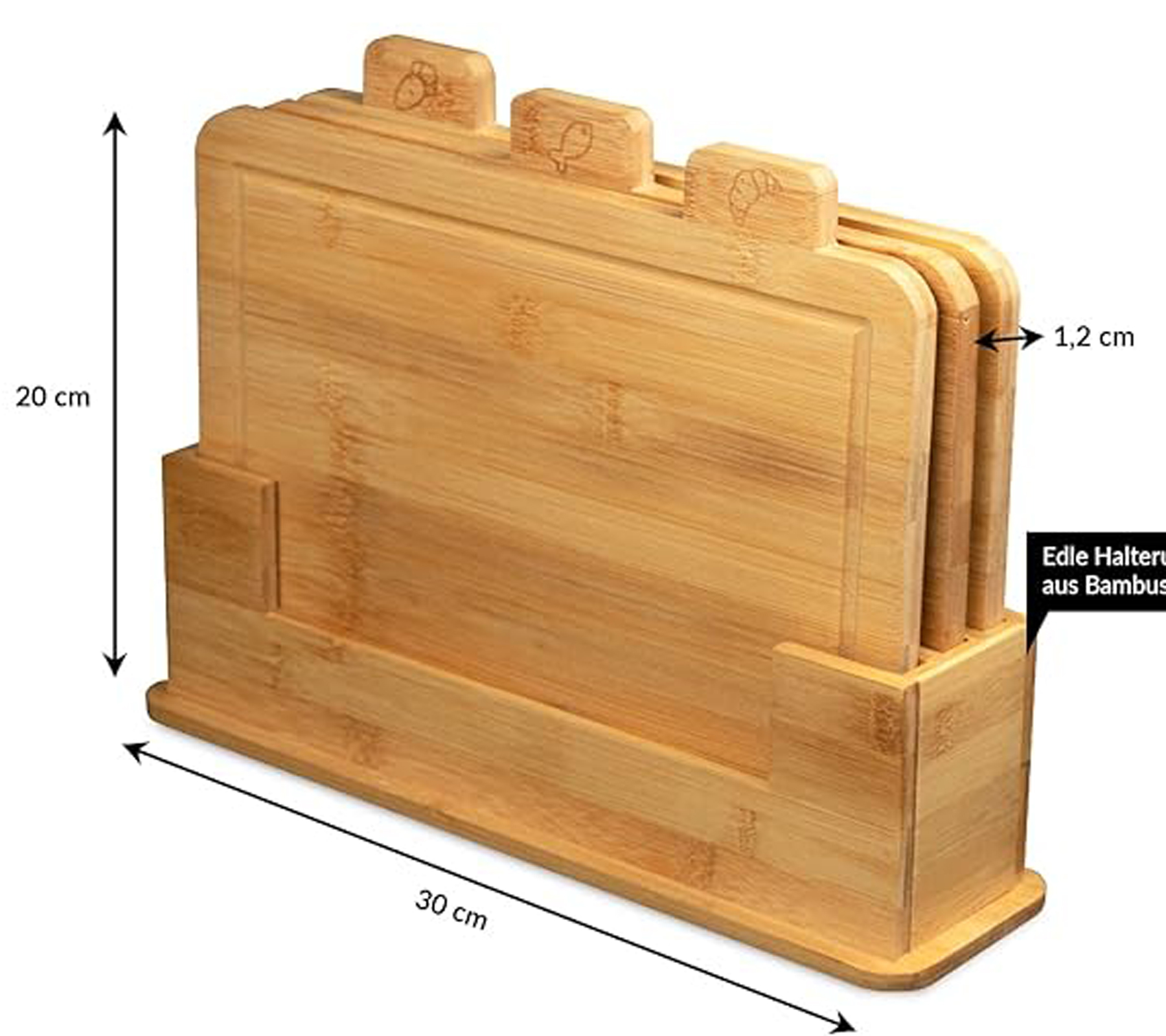 - INKL. BRETTER-STÄNDER - Mit dem praktischen Ständer kannst du deine Holzbrettchen stilvoll & griffbereit aufbewahren, außerdem ist er platzsparend & lässt die Holzbretter schneller trocknen