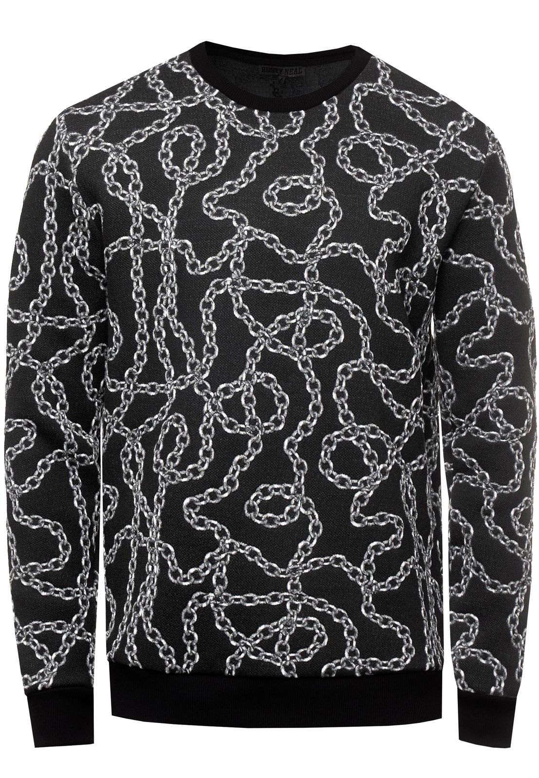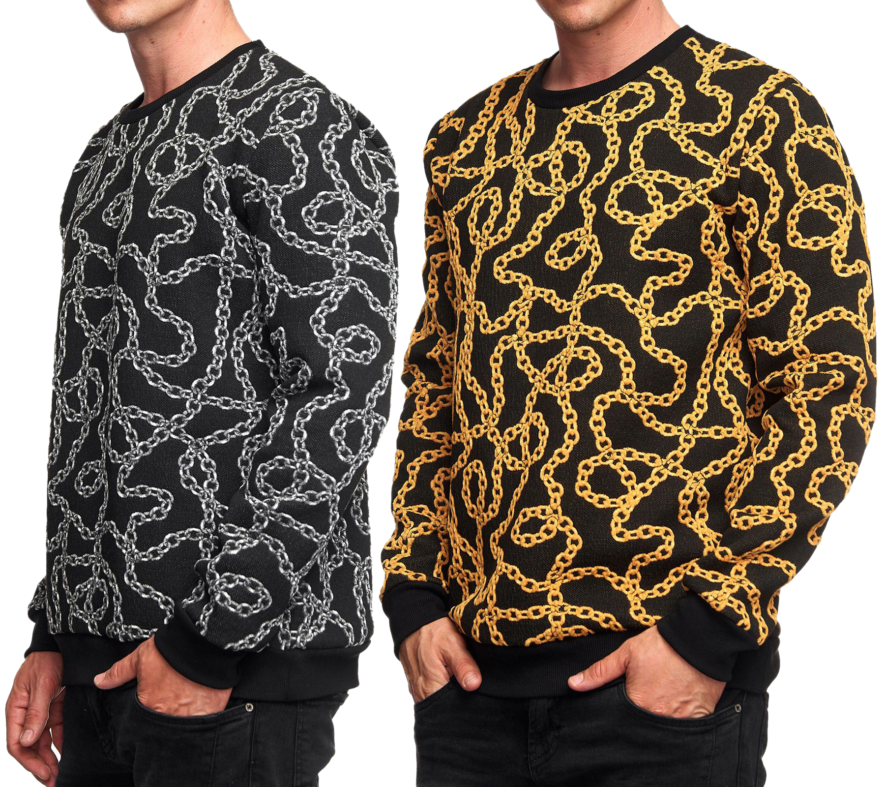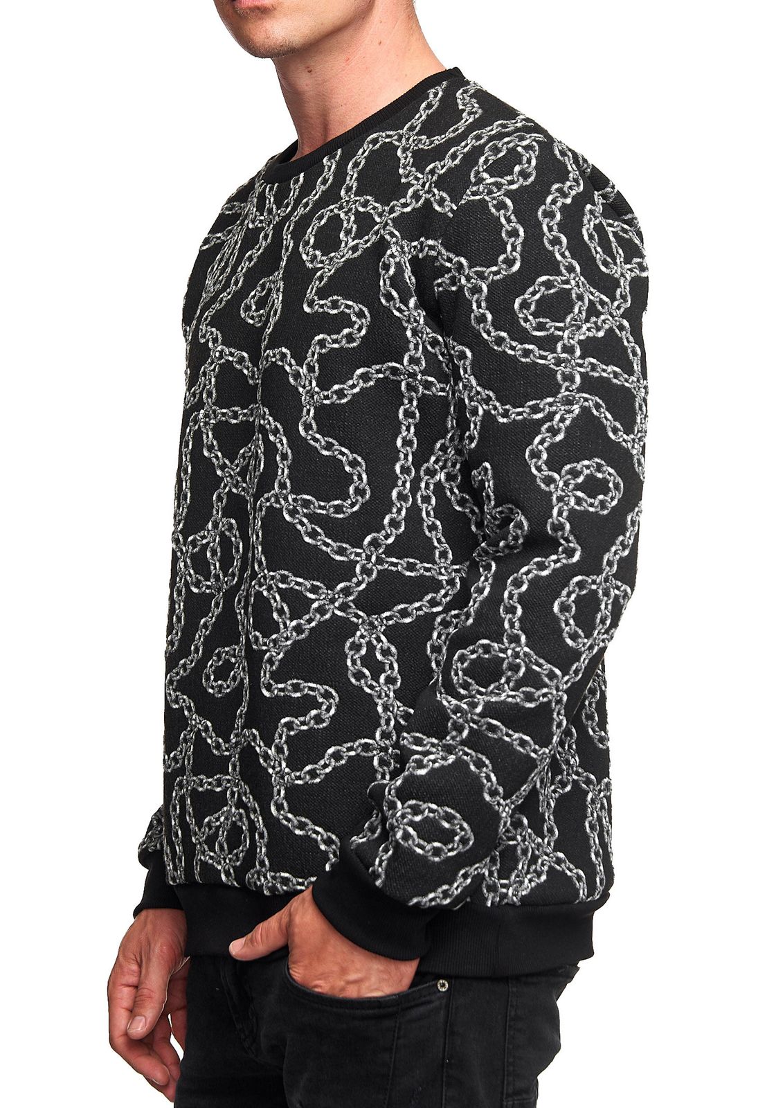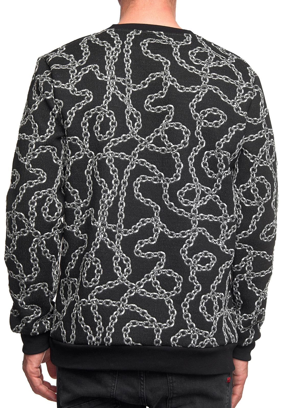 Ausgefallenes Sweatshirt für Herren mit Muster im Ketten-Design Rundhals-Pullover 19141 in Schwarz oder Gelb
