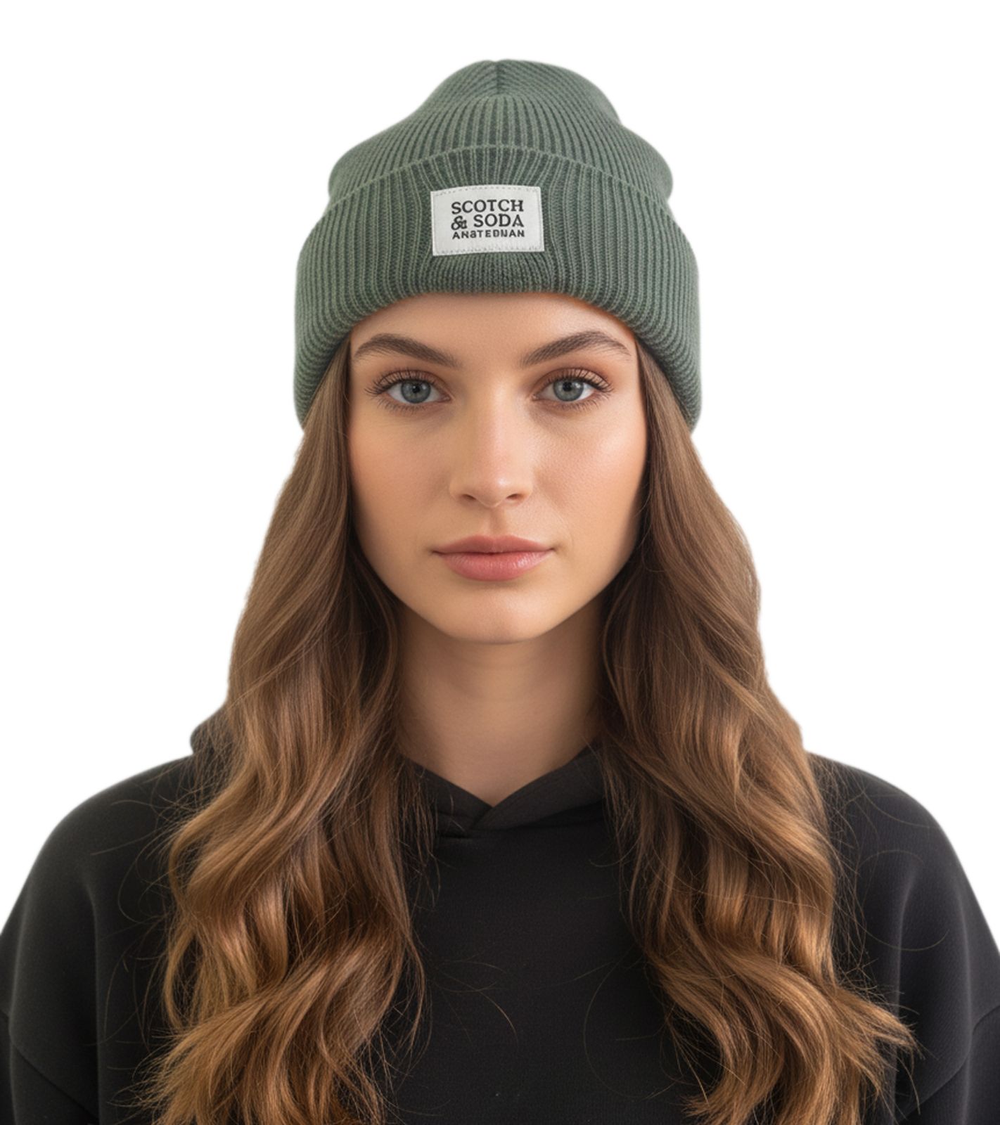Bequeme SCOTCH & SODA Woll-Mütze und Handschuhe Strick-Handschuhe Strick-Beanie mit Logo-Patch Accessoires Wolle SSV5-3012 in Grau oder Grün