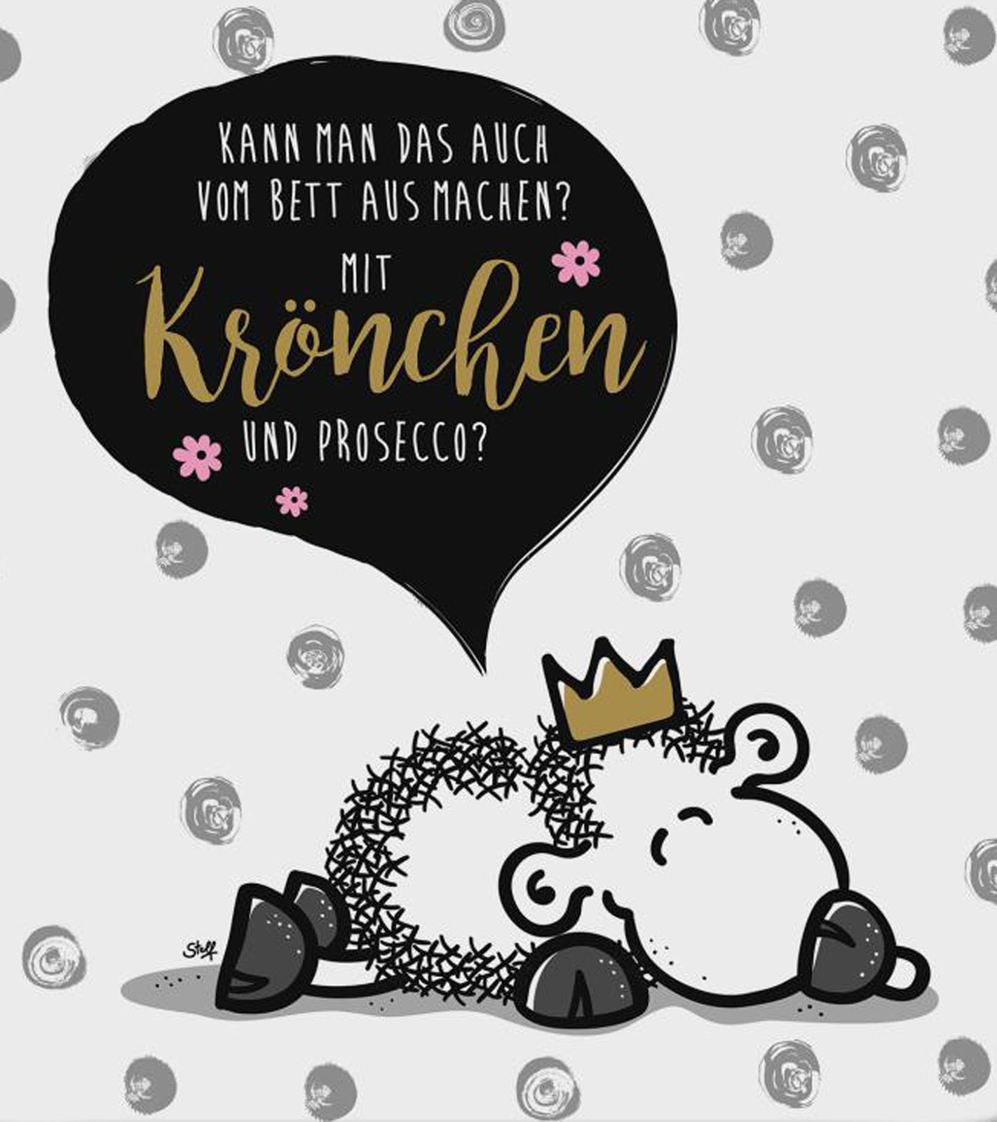 - langärmliges Oberteil mit "Kann man das auch vom Bett aus machen? Mit Krönchen und Prosecco" Print