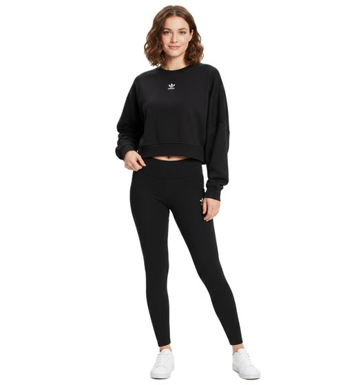 bequemes adidas Essentials Damen Crop-Sweatshirt Relaxed Fit Baumwoll-Pullover IW0953 Schwarz