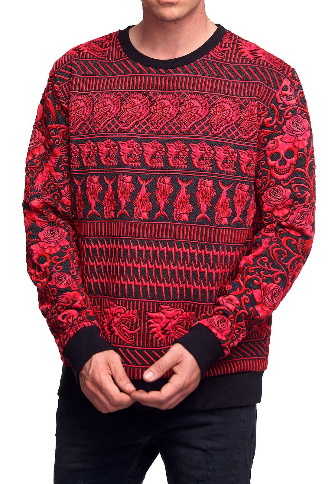 Bequemes Sweatshirt für Herren mit extravagantem Muster Rundhals-Pullover Sweater 19146 Rot