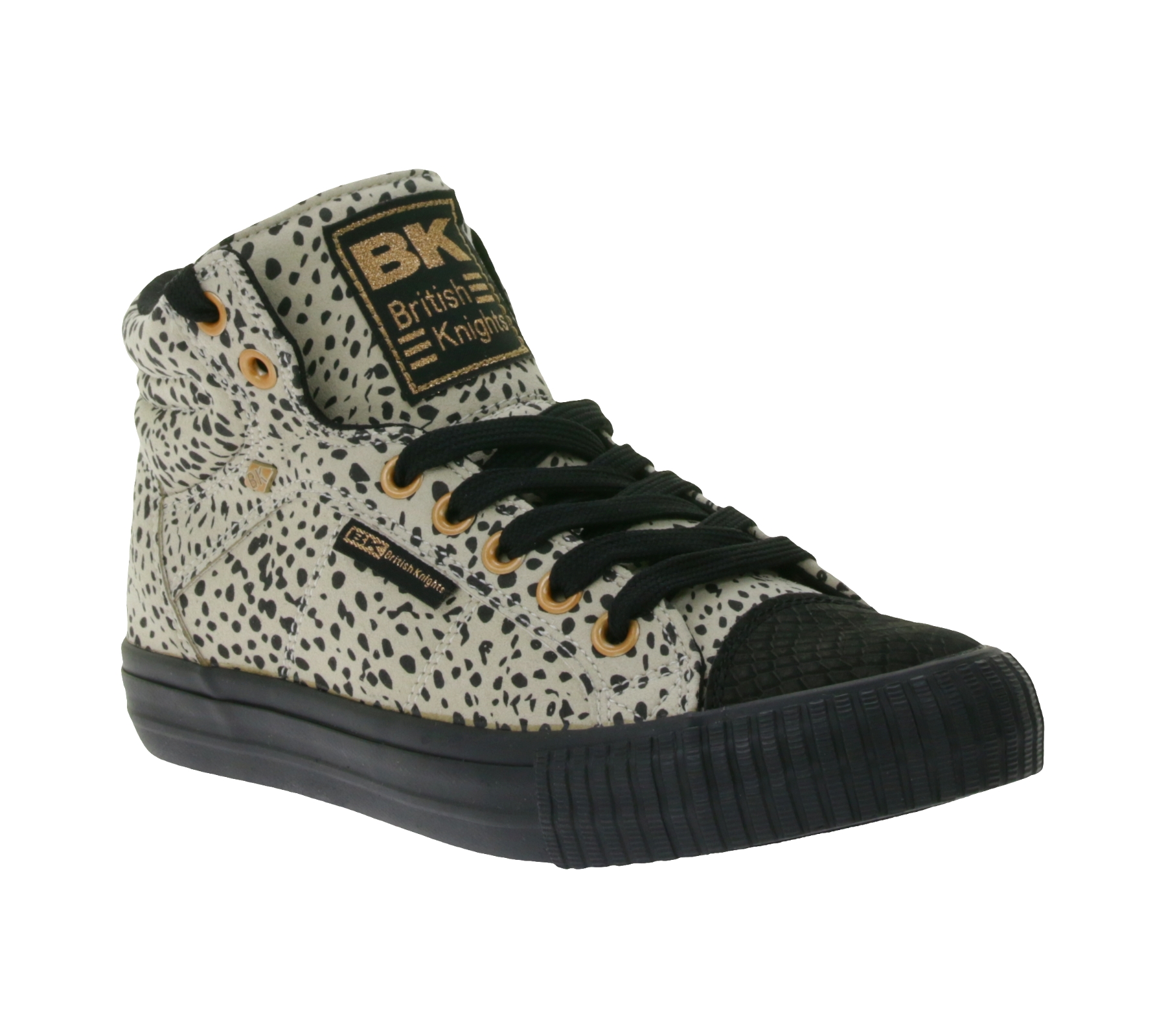 BRITISH KNIGHTS Dee Damen Mid-Top Sneaker mit Geparden-Muster Schnür-Schuhe mit verstärktem Zehenbereich B48-3728-01 Beige/Schwarz