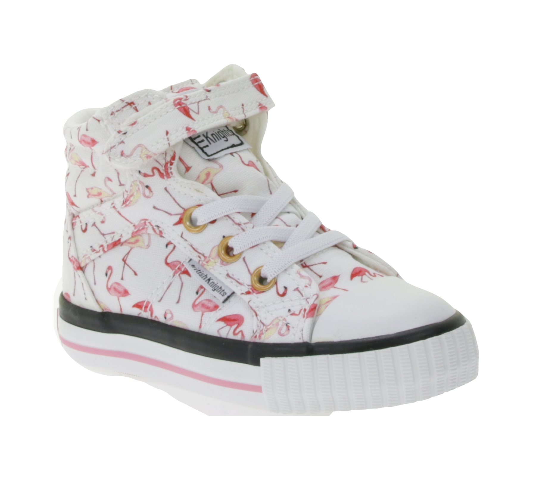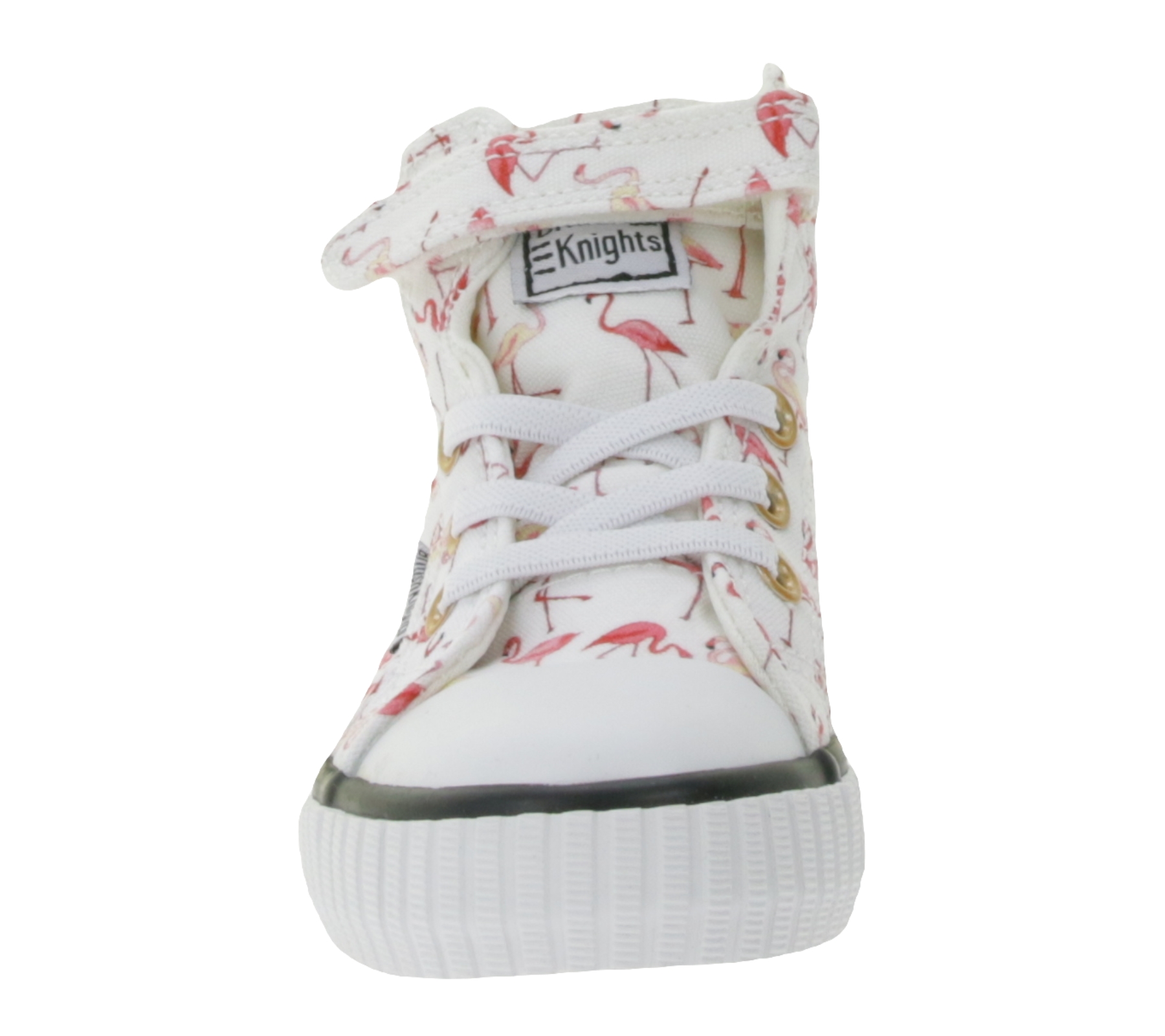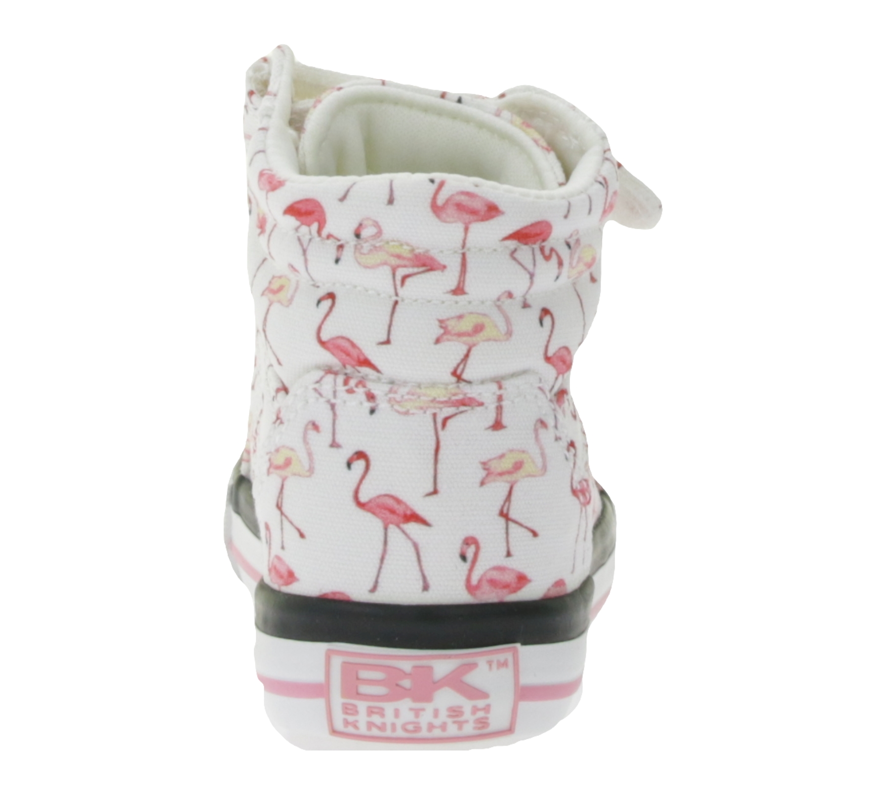 BRITISH KNIGHTS Dee Kleinkinder Mid-Top Sneaker mit Flamingos Mädchen Schnür-Schuhe mit verstärktem Zehenbereich B49-3733I-03 Weiß/Pink/Bunt