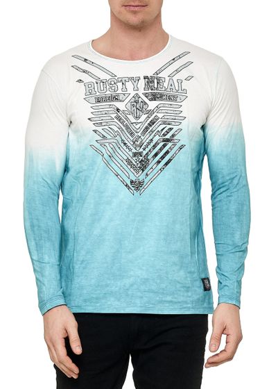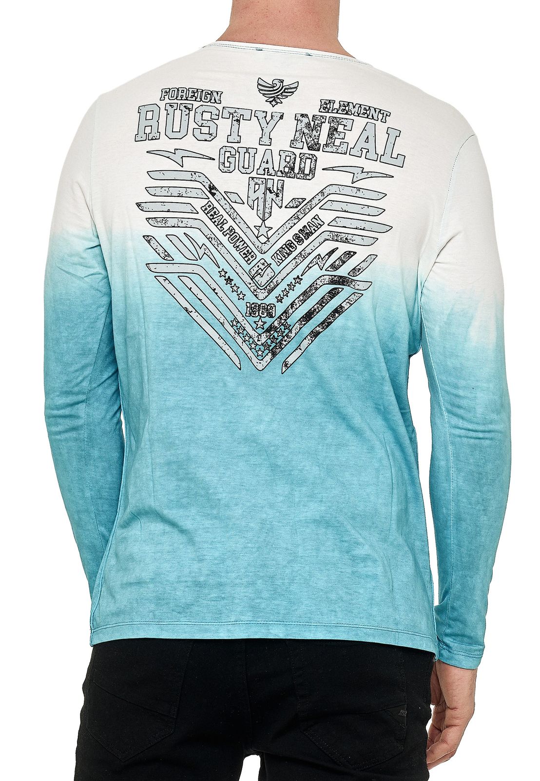 Cooles Herren Longsleeve mit Farbverlauf und Frontprint Slim Fit Rundhals Langarm-Shirt im Washed Look 10148 Petrol