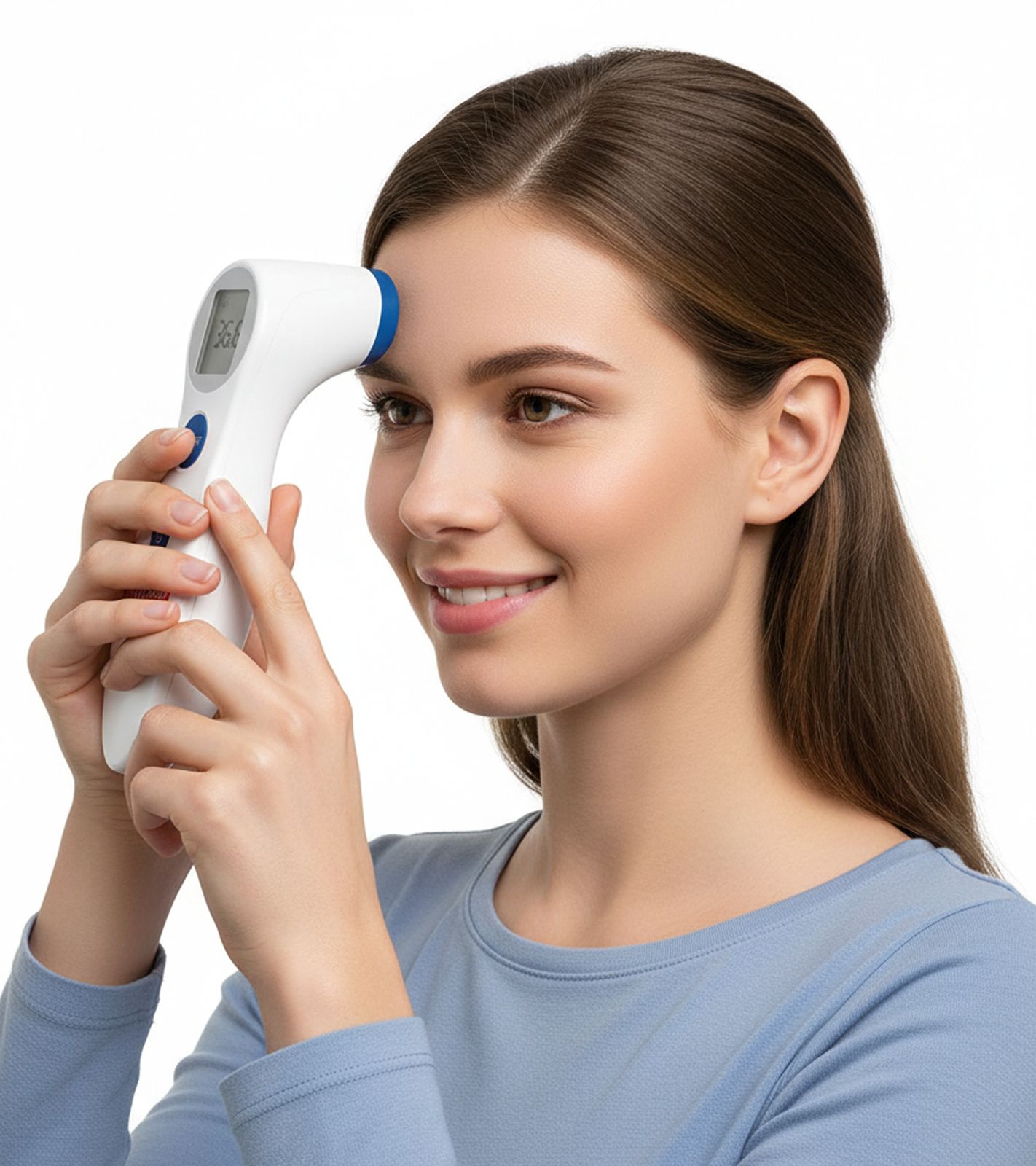 - Das Thermometer wandelt die Stirntemperatur um, um ihr "orales Äquivalent" anzuzeigen