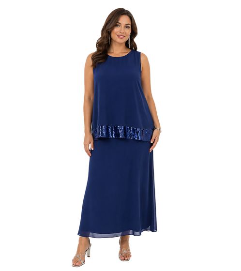 Damen Maxi-Kleid aus feinem Georgette mit Pailletten Ausgeh-Kleid ärmellos 975925 Dunkelblau