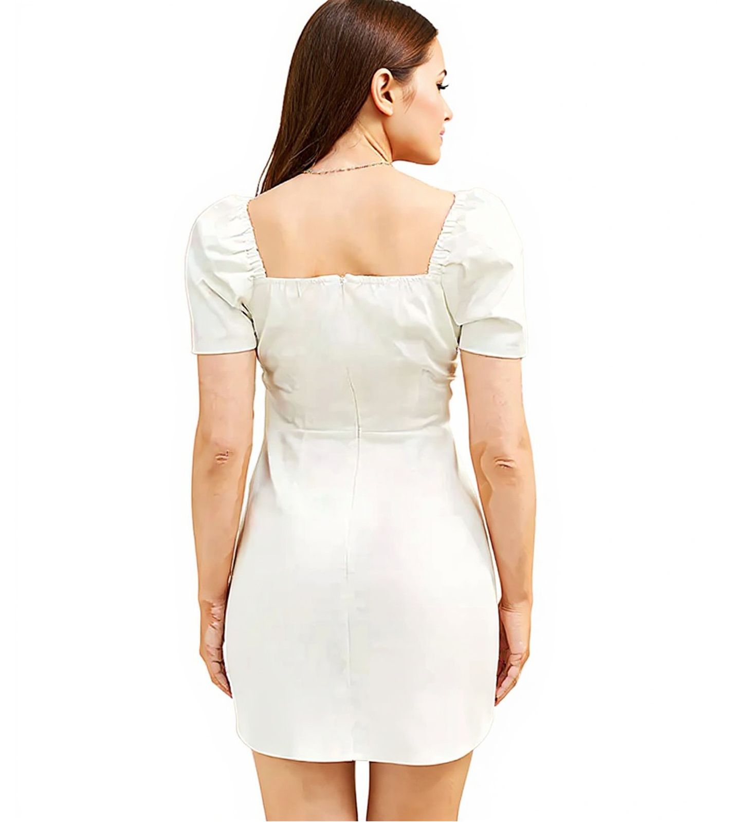 Damen Puffärmelkleid Strand-Kleid mit Baumwollanteil Midi-Kleid 973350 Weiß